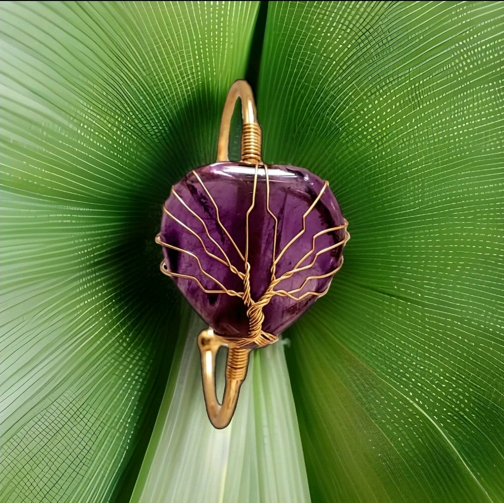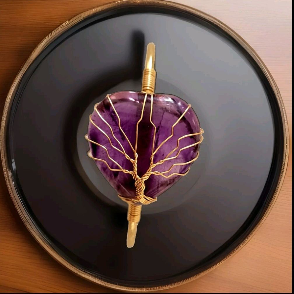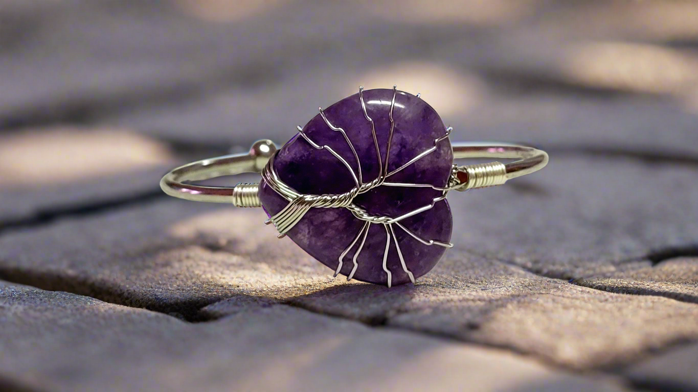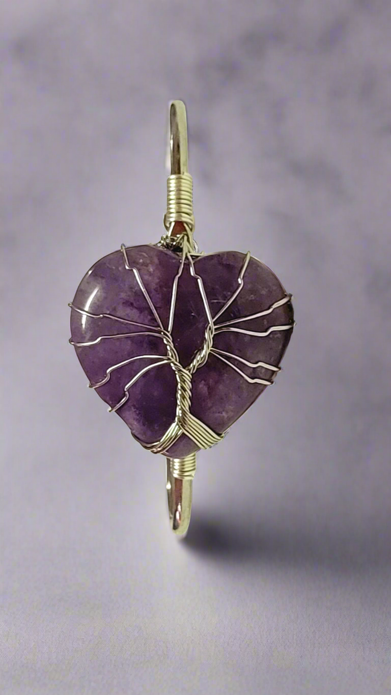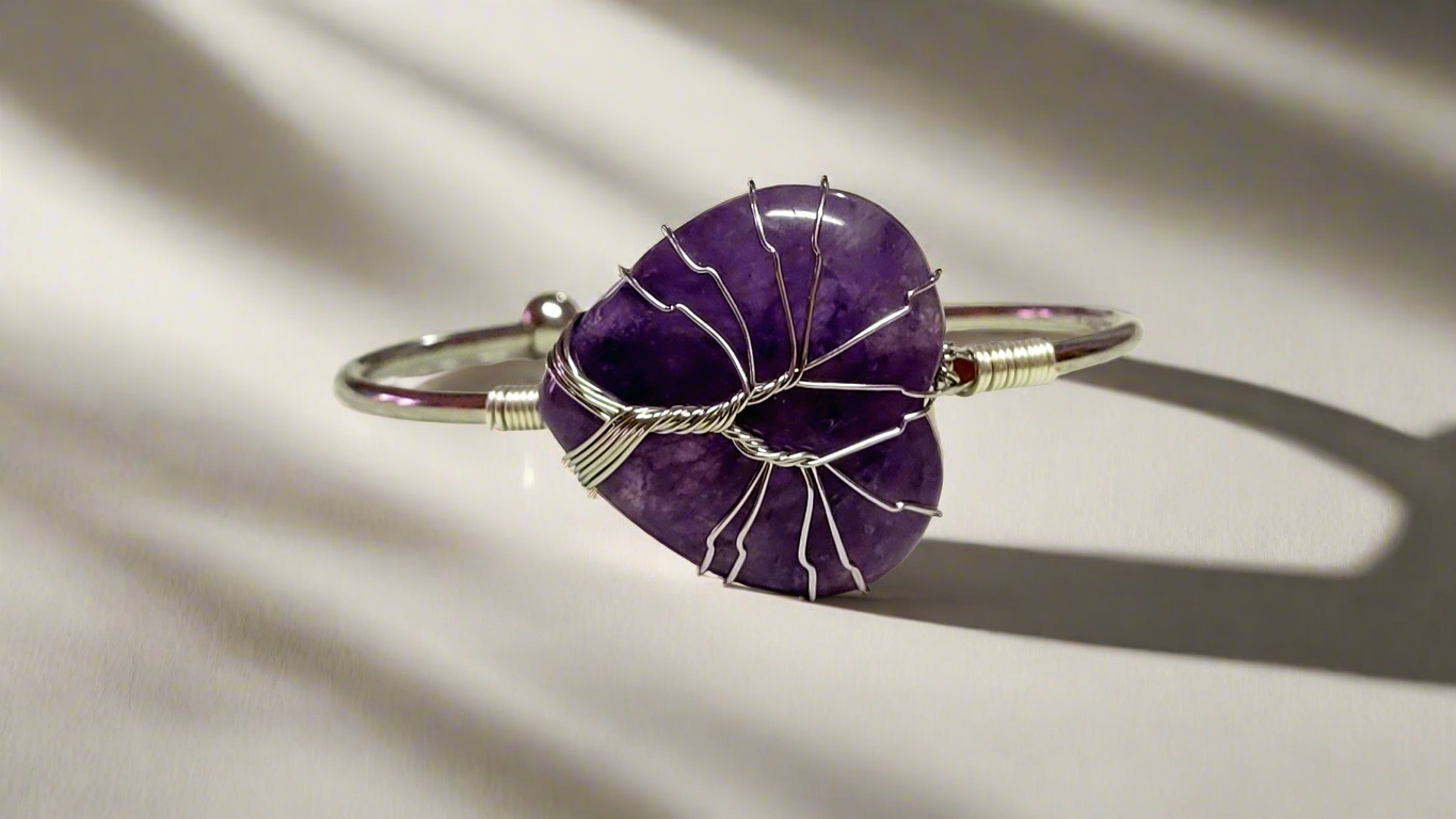 Enhance your style with the Tree of Life Wire Wrapped Amethyst Heart Bangle Bracelet. Embrace the elegance and meaningful symbolism of this handcrafted piece—order yours today and add a touch of sophisticated charm to your jewelry collection.
