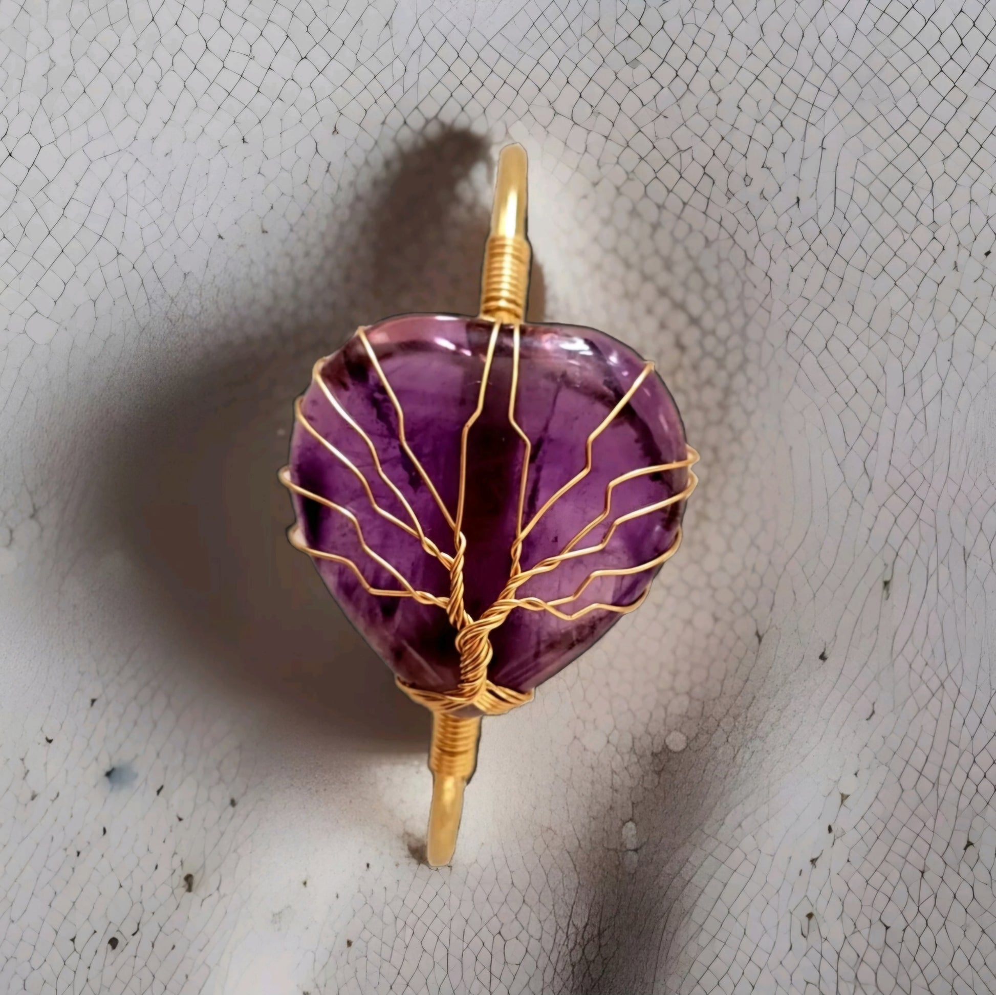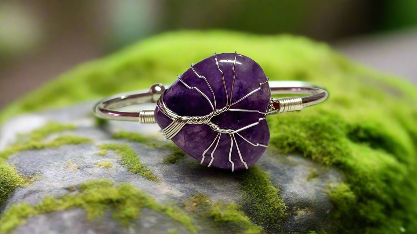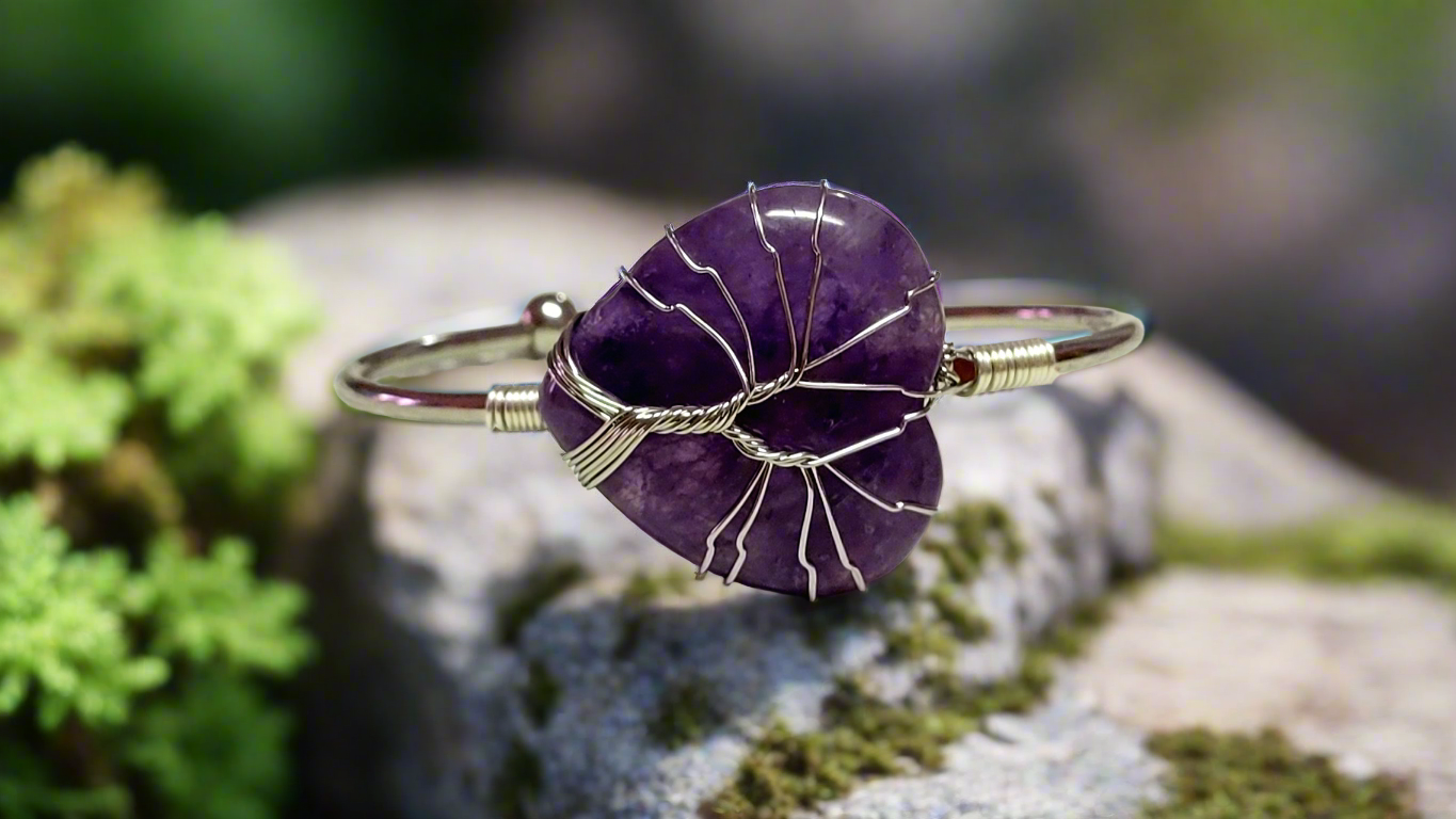 Embrace Elegance with the Tree of Life Wire Wrapped Amethyst Heart Bangle Bracelet