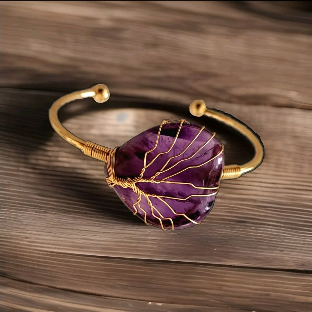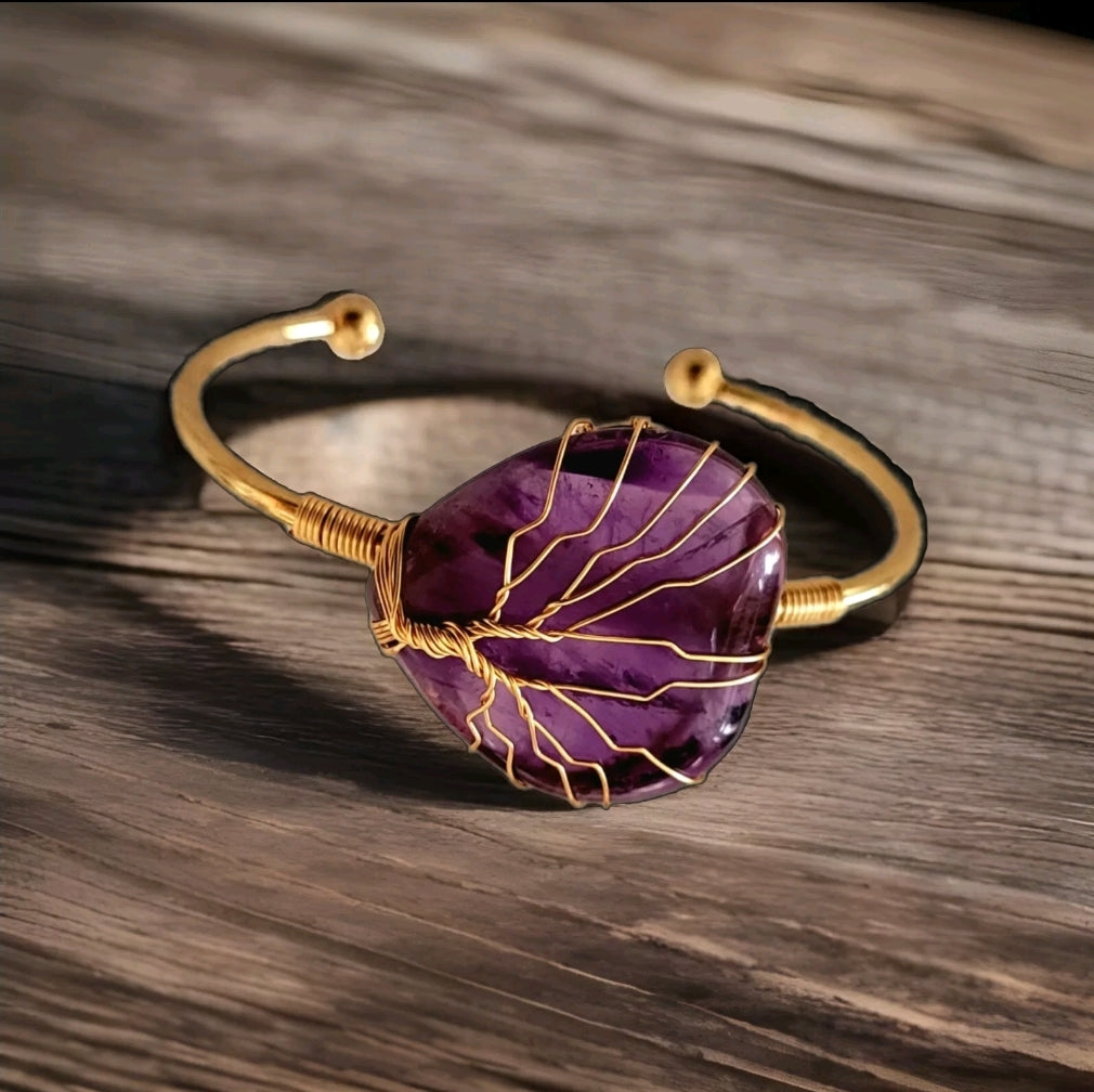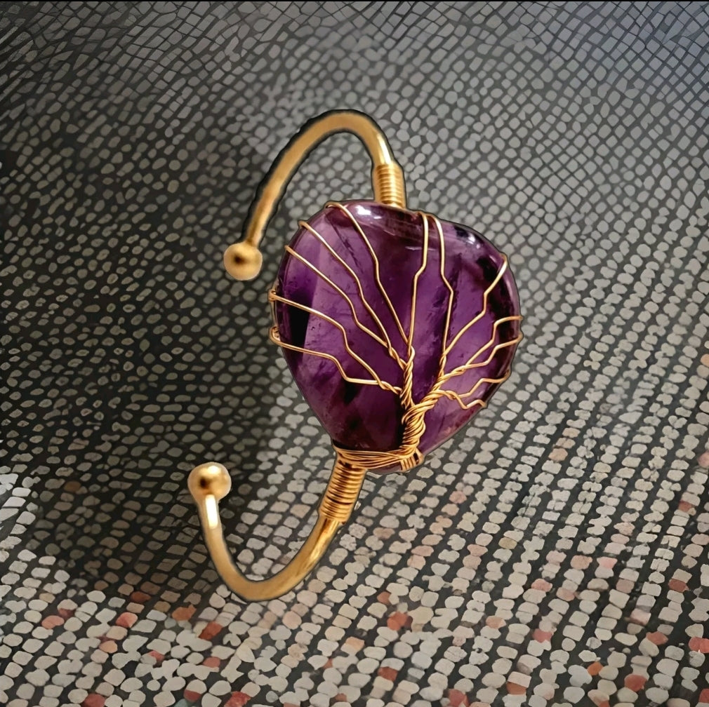- Tree of Life Wire Wrap Design: The amethyst is beautifully wrapped in a wire design inspired by the Tree of Life. This ancient symbol represents growth, strength, and interconnectedness, adding a layer of meaningful artistry to the bracelet.
