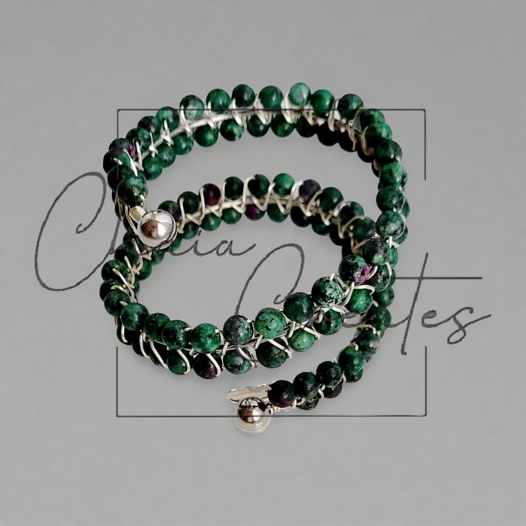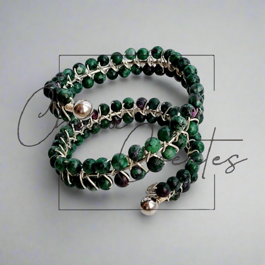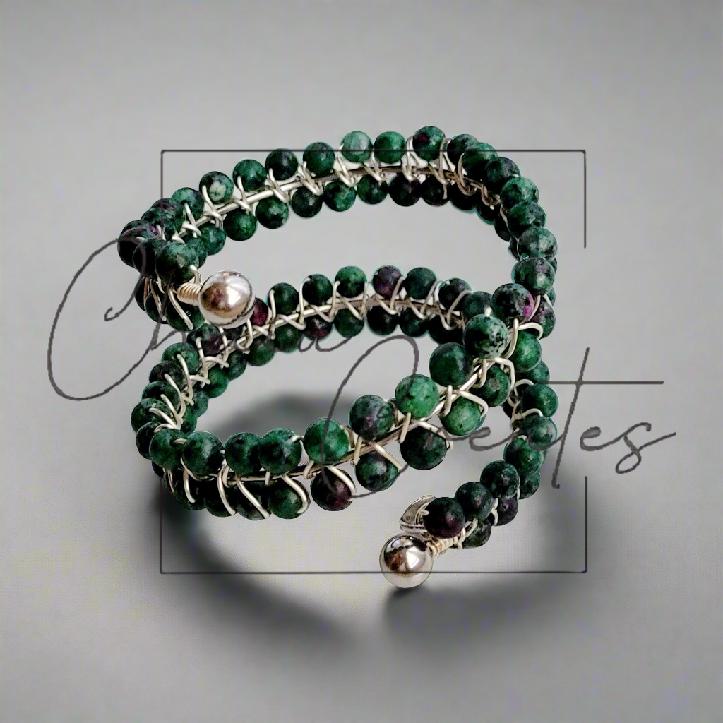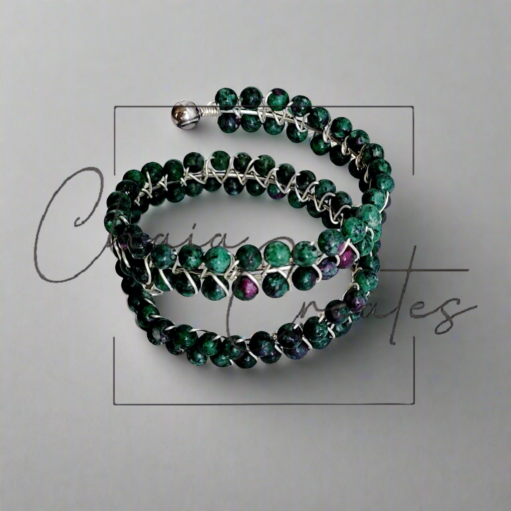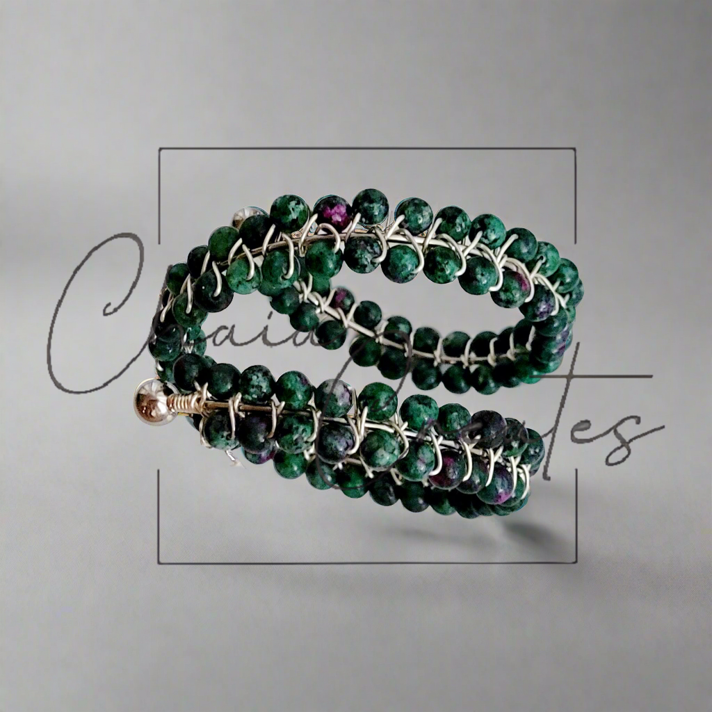 Tags: Anyolite Ruby in Zoisite, Wire-Woven Bracelet, Healing Gemstone Jewelry, Adjustable Cuff Bracelet, Handmade Jewelry, Elegant Bangle