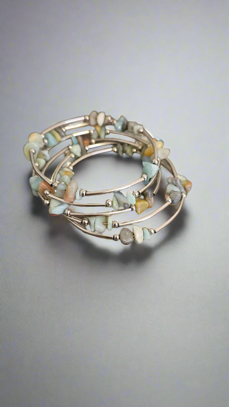Beachy Agate Necklace with Orange Sea Shell Pendant and Agate Memory Wire Bracelet