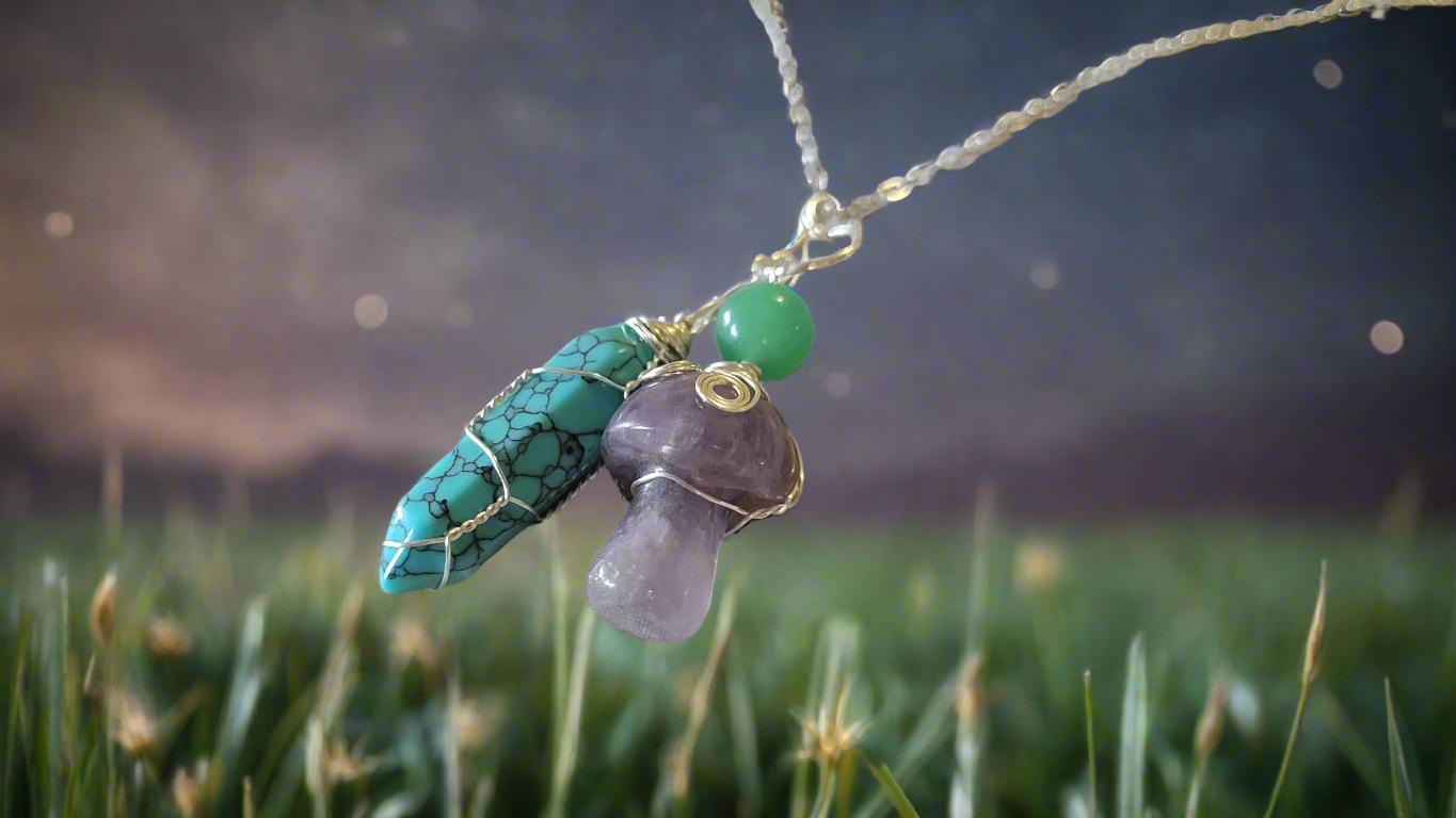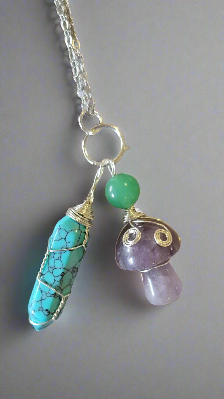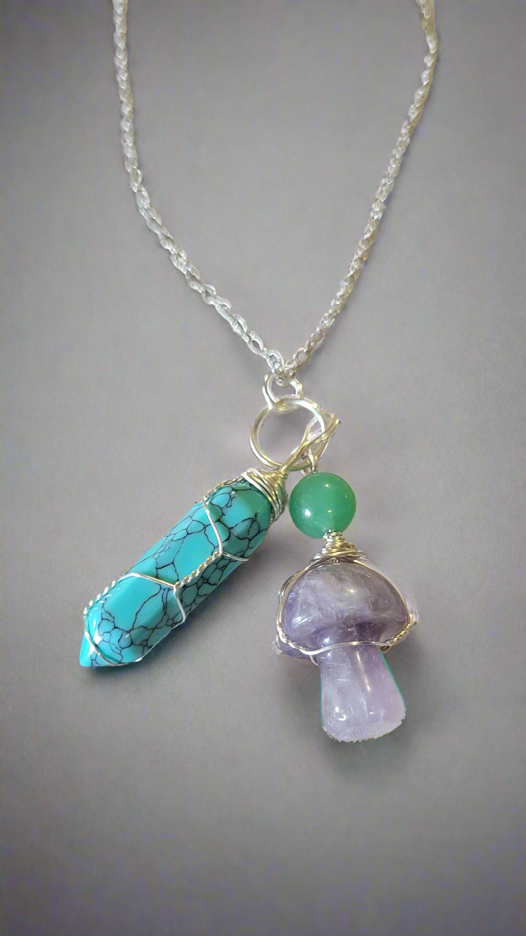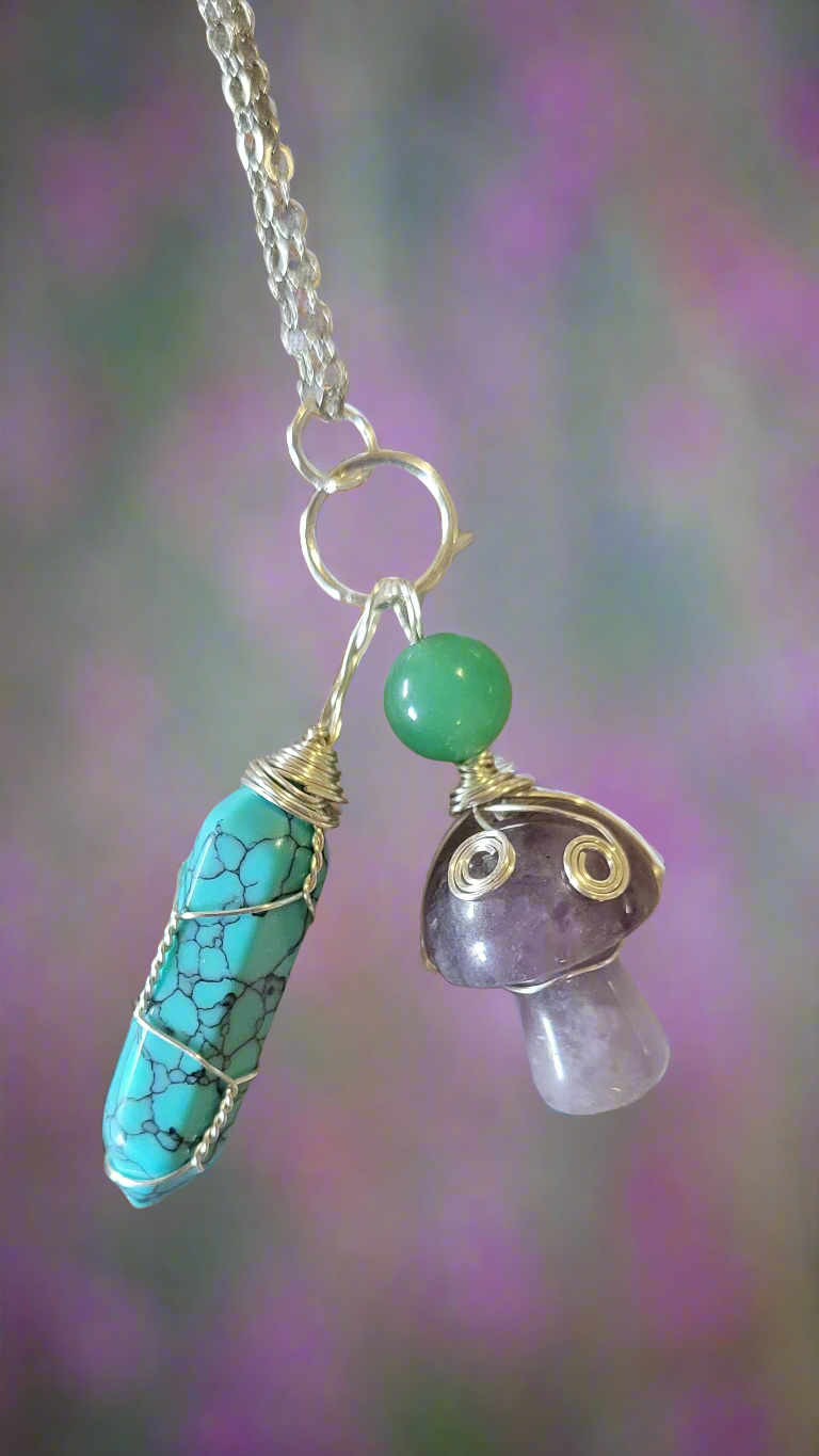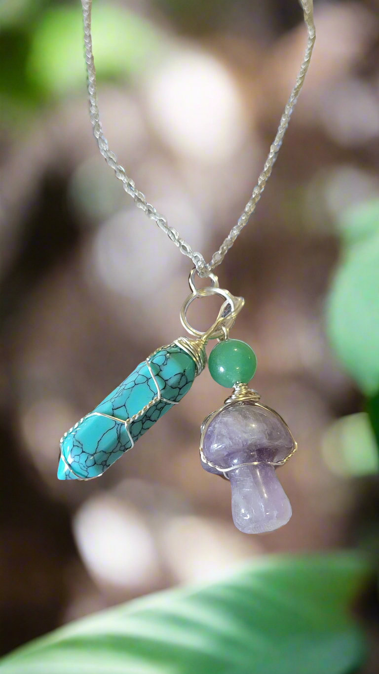 Turquoise & Amethyst Amulet Pendant Lucky Charm Necklace