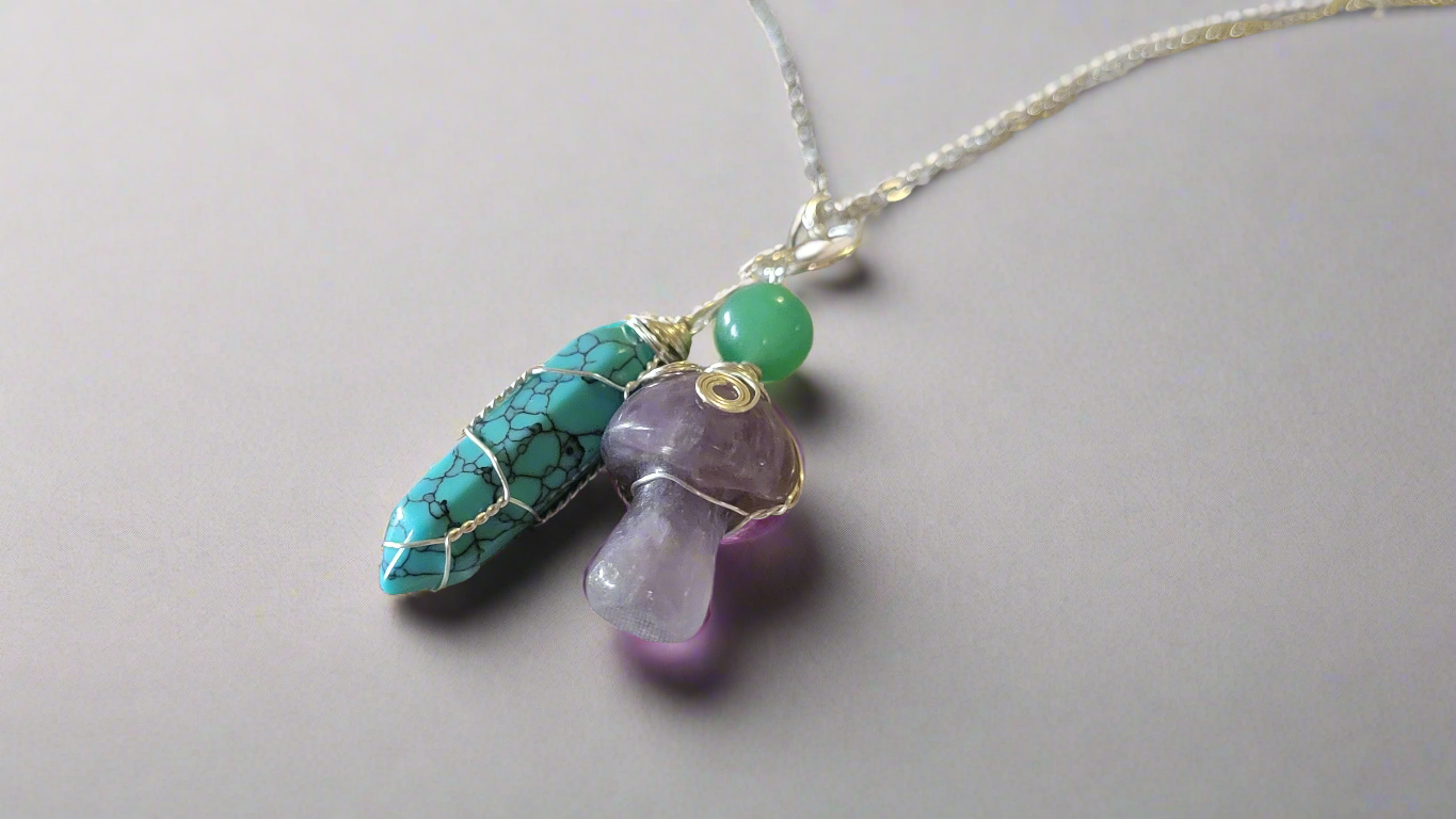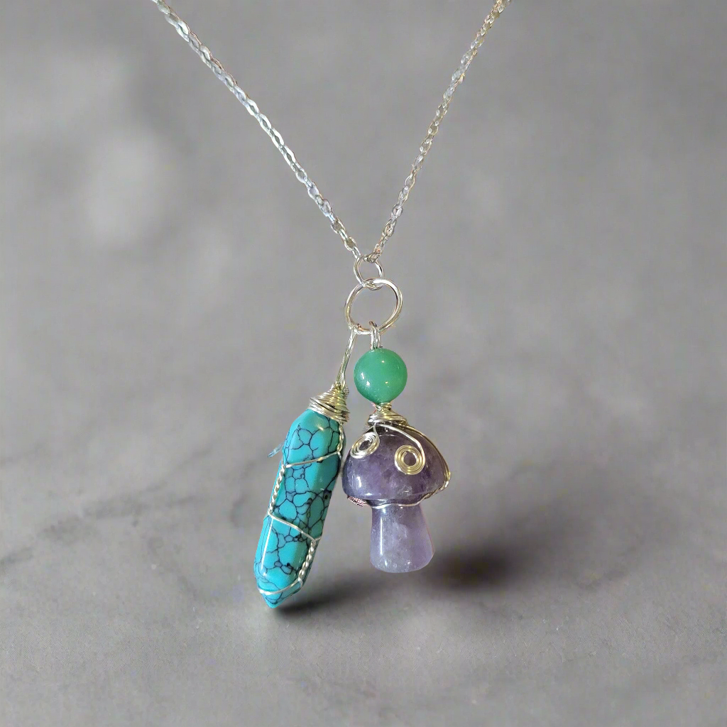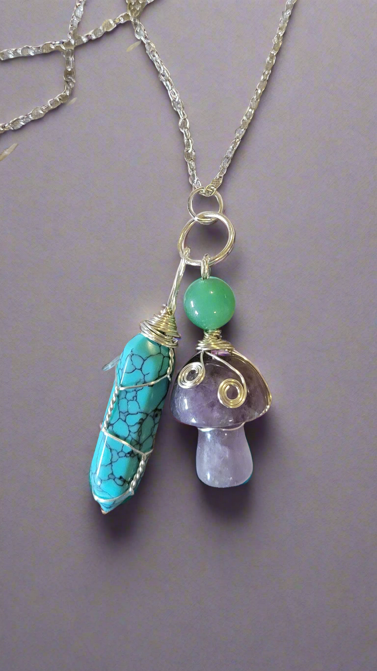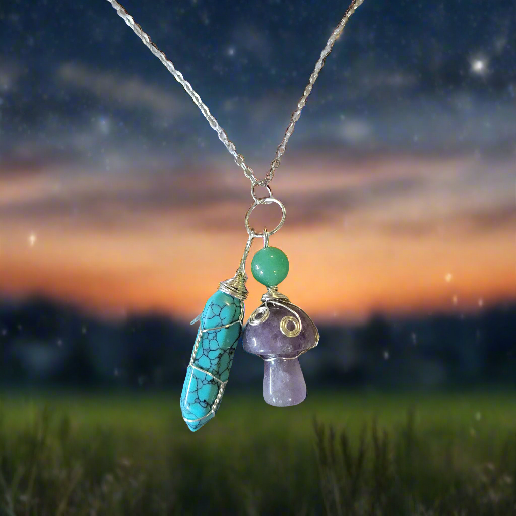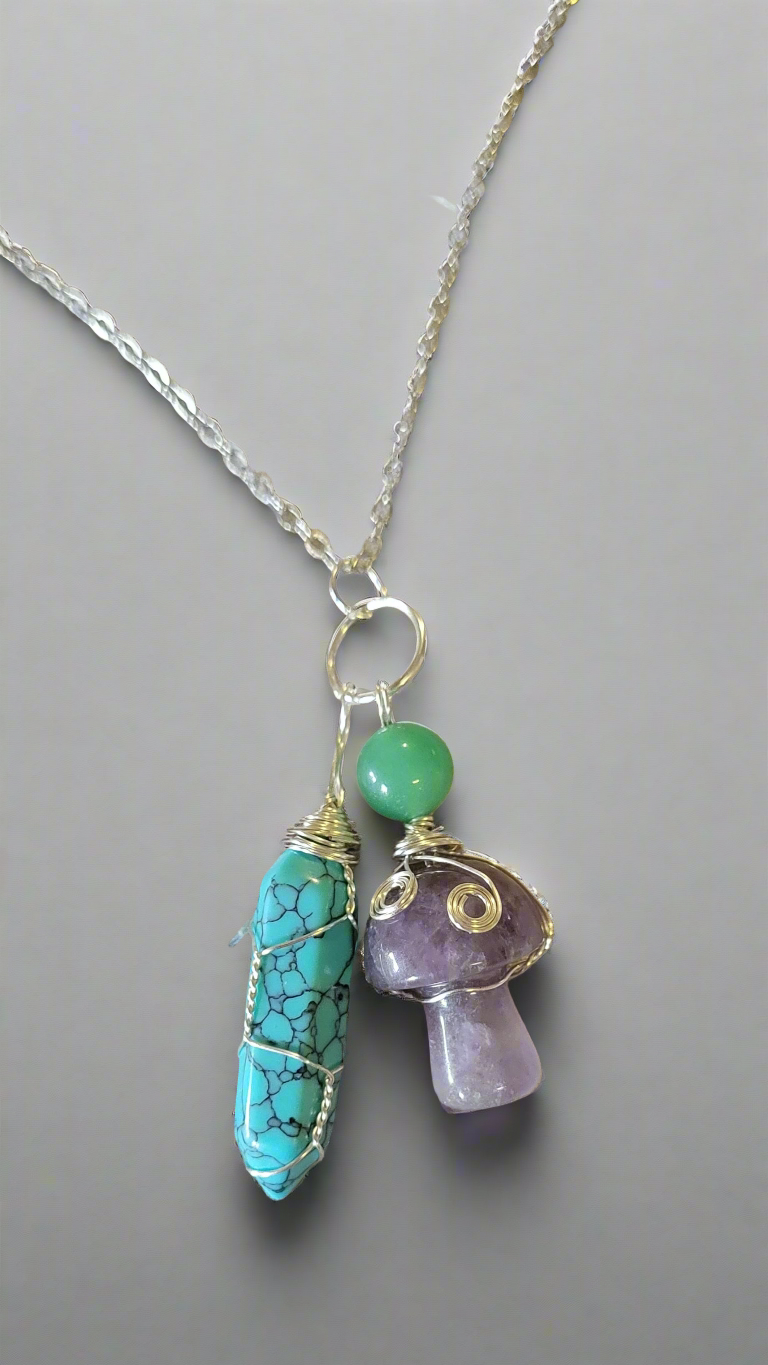 Turquoise & Amethyst Amulet Pendant Lucky Charm Necklace