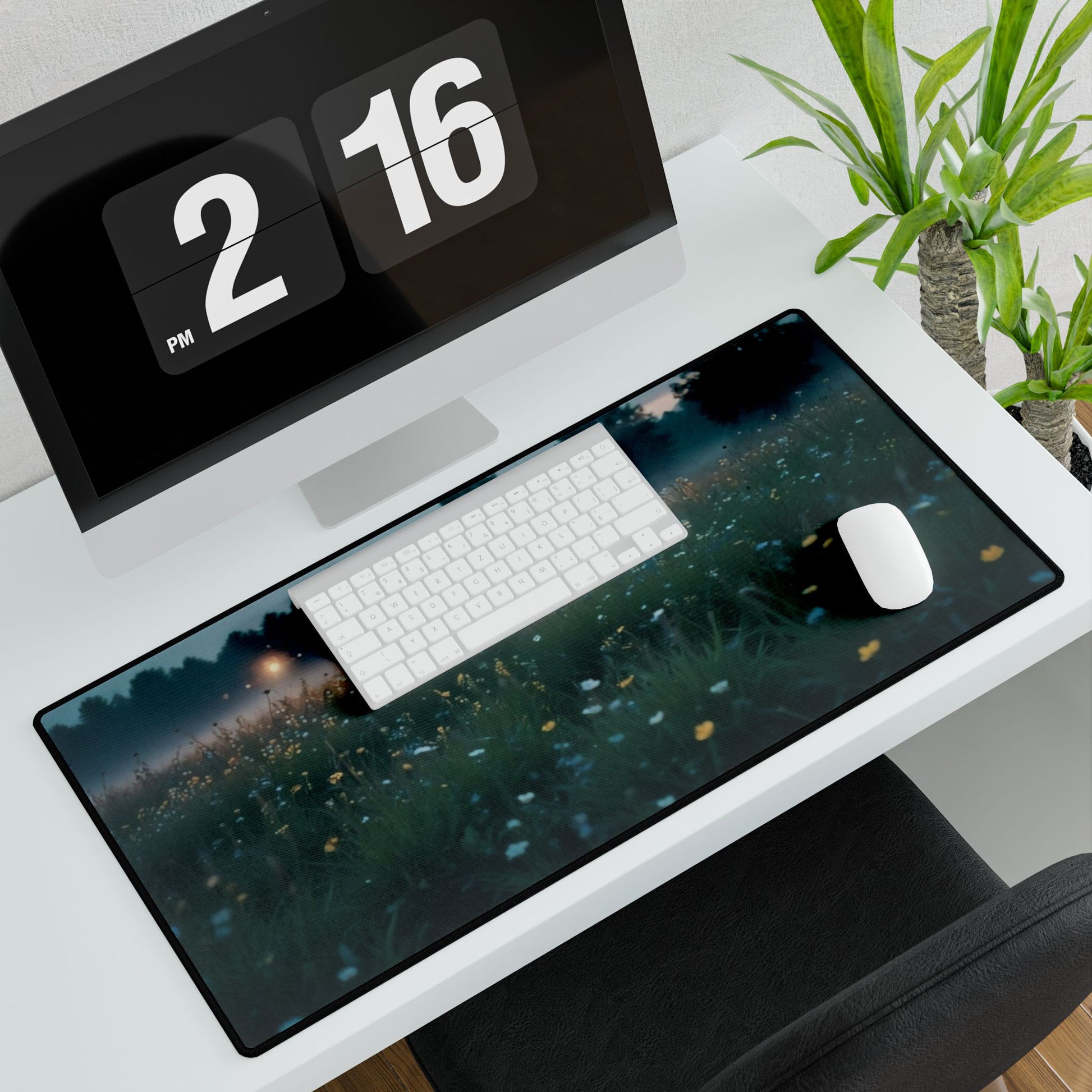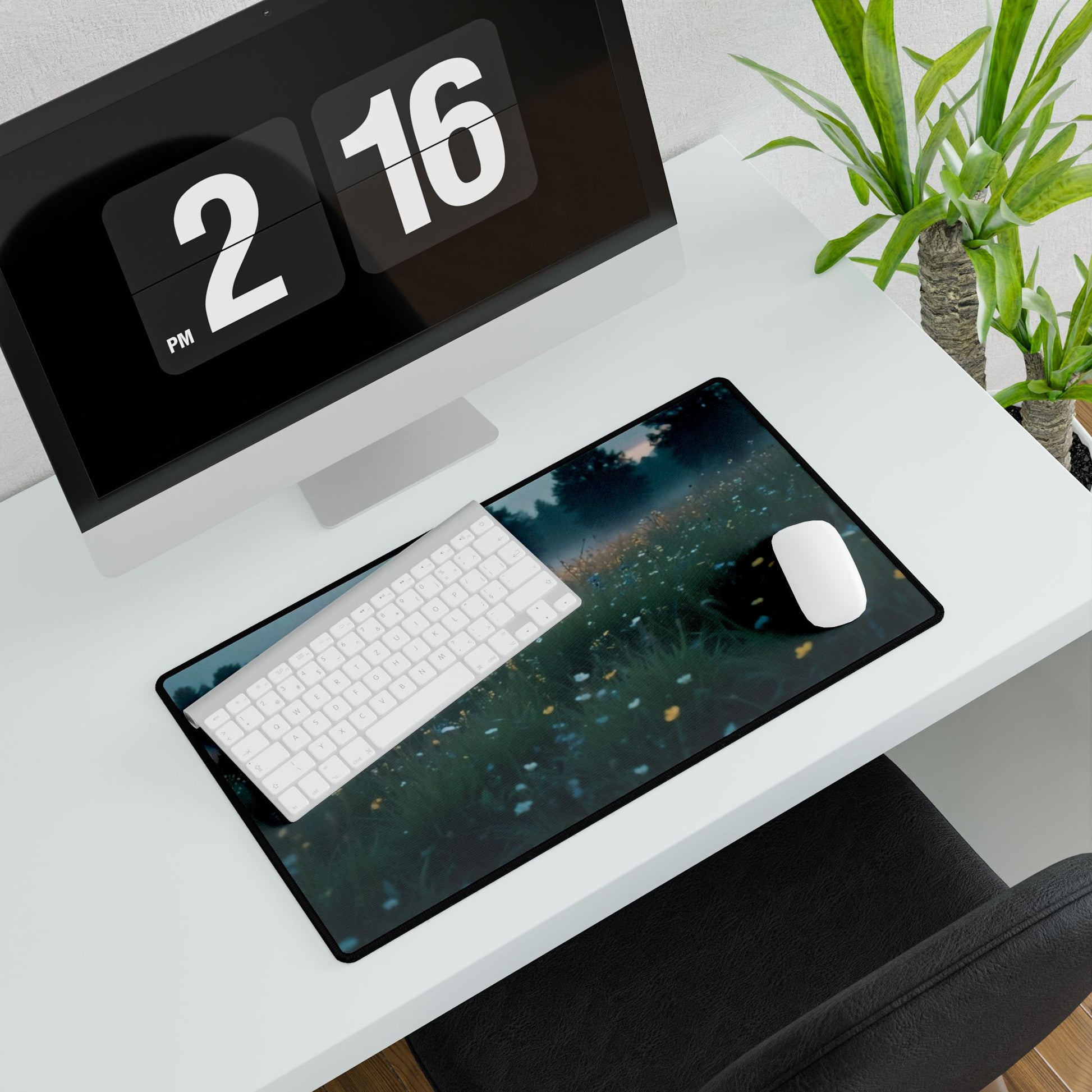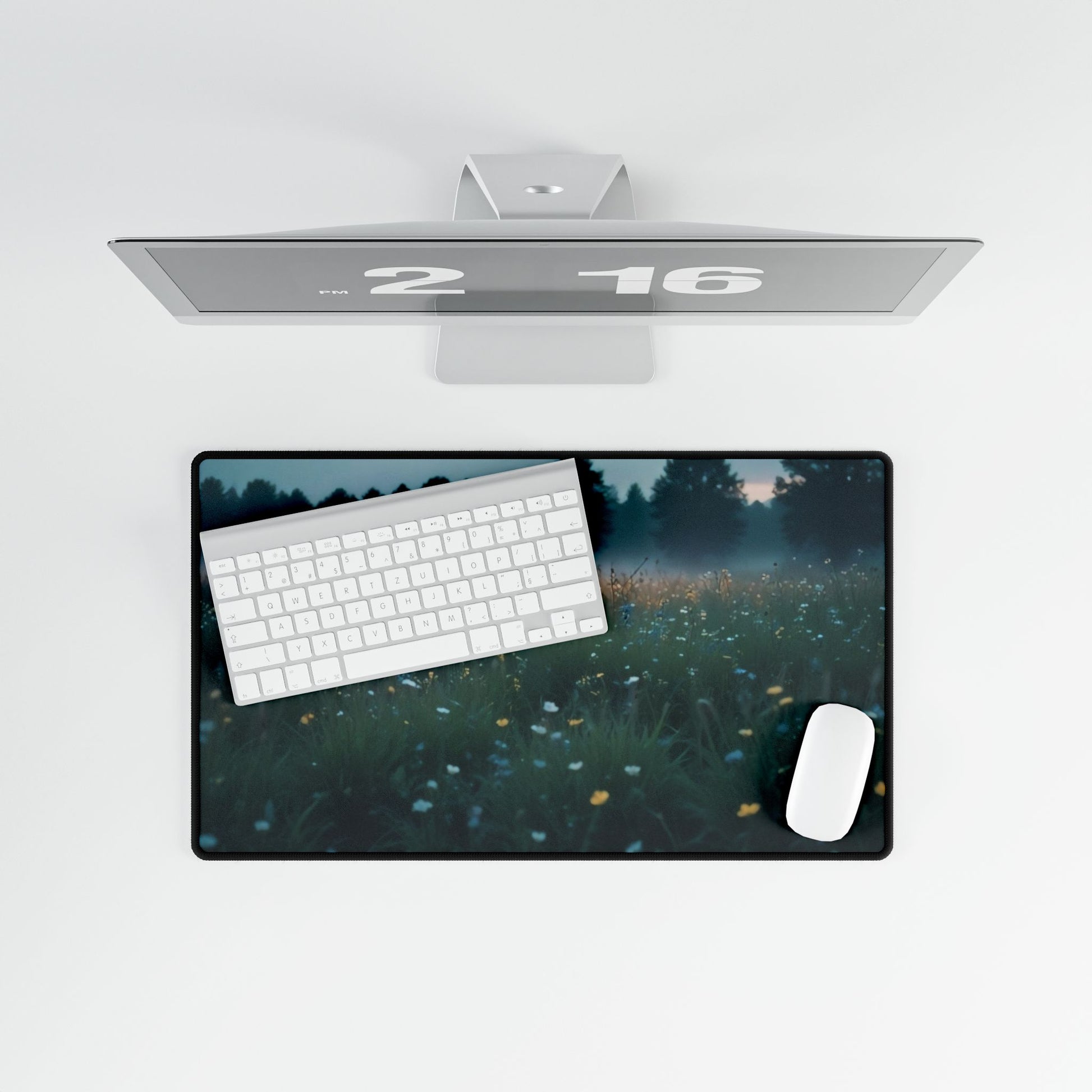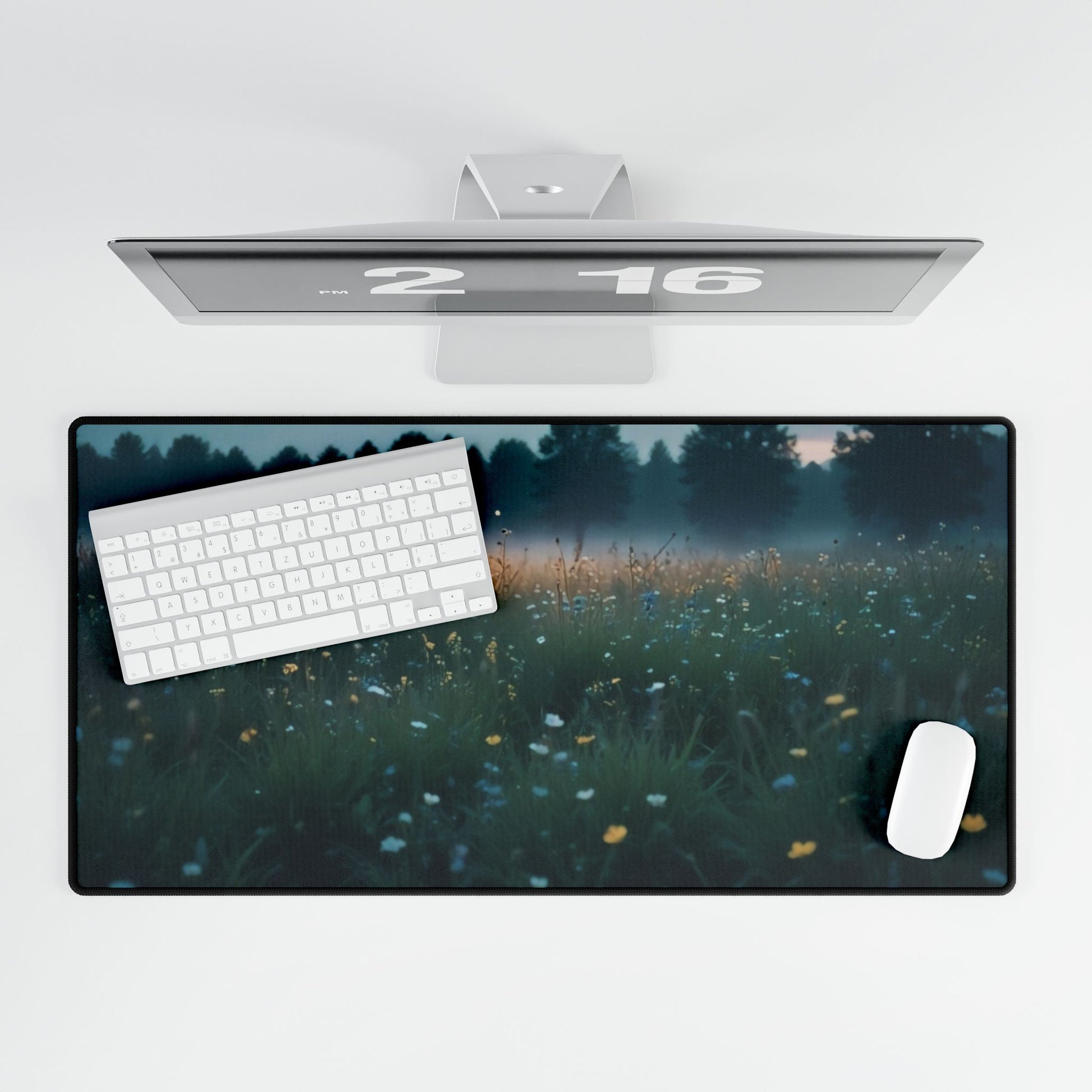 Desk Mat - Echoes in the Mist Floral Meadow Twilight Misty Field Nature Ambiance