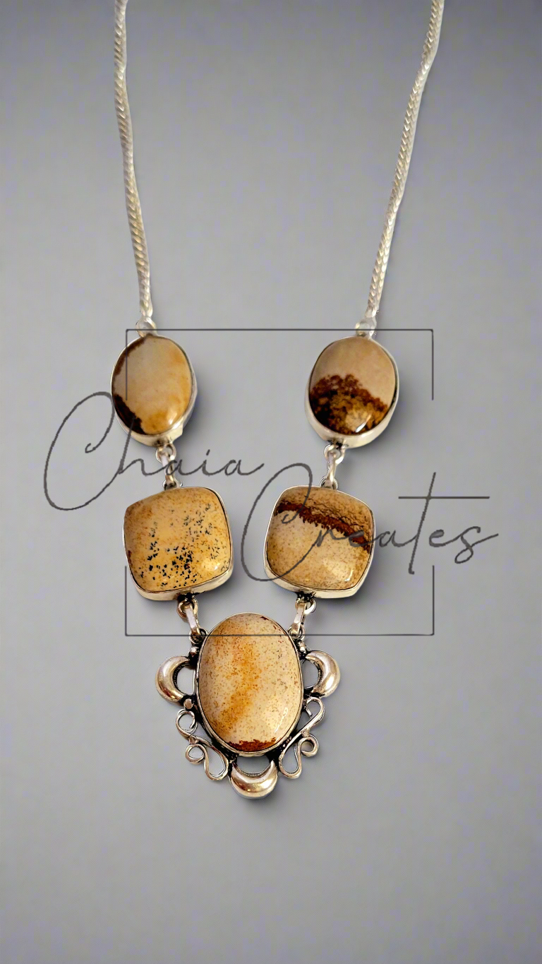 Discover a masterpiece where nature’s artistry meets sophisticated design. The Elegant Picture Jasper Necklace in .925 sterling silver is a celebration of beauty and craftsmanship, blending earthy charm with refined elegance.