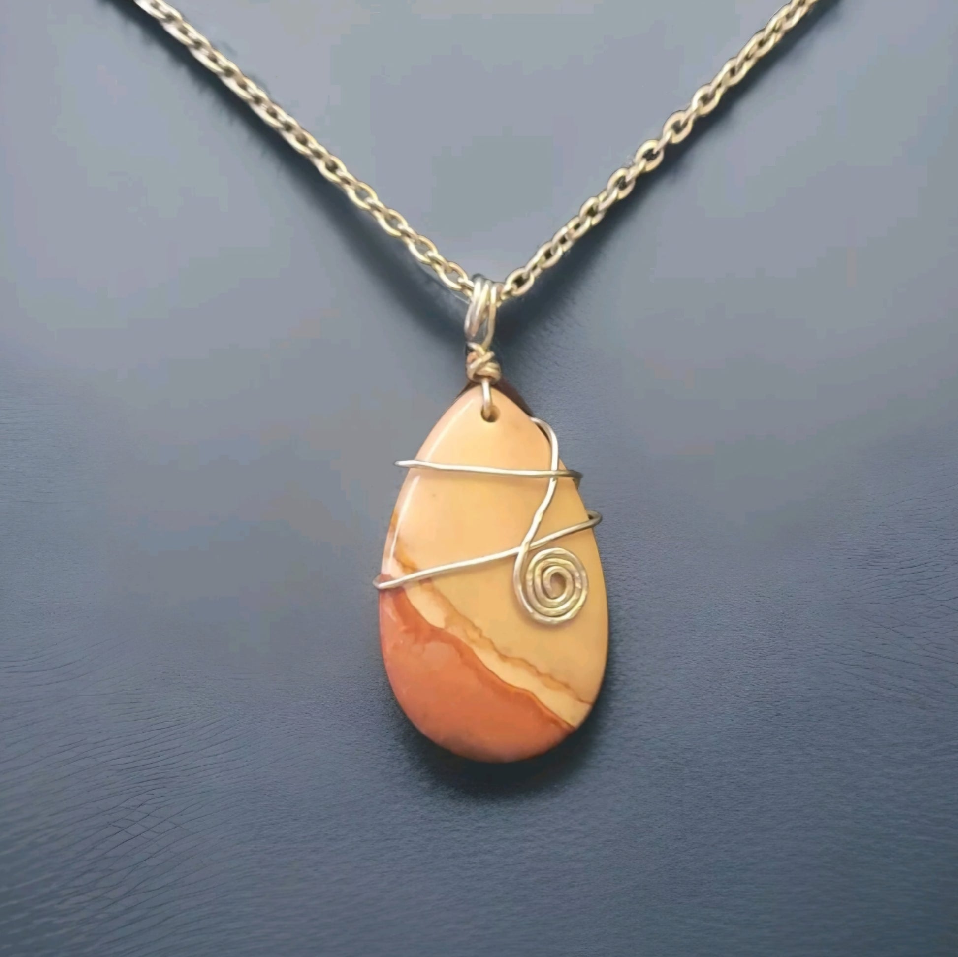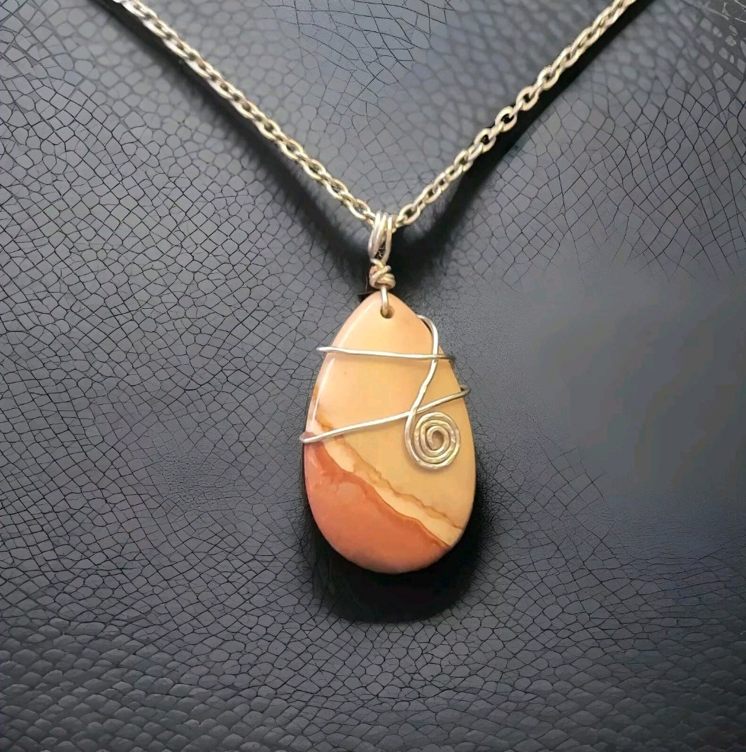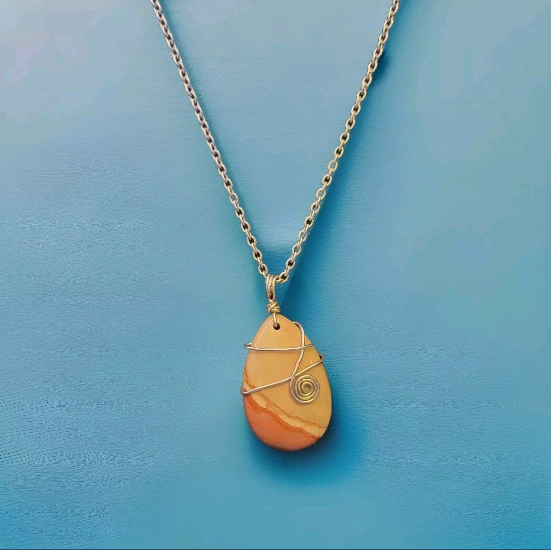 Elevate your bohemian style with this stunning Polychrome Jasper Teardrop Pendant Wire Wrapped Stone Silver Link Necklace. The teardrop-shaped pendant is made of natural jasper with beautiful brown hues, complemented by a round link chain made of sturdy steel. The pendant is securely attached to the chain with a lobster closure, making it perfect for everyday wear. This handcrafted pendant necklace by Chaia Creates showcases a single gemstone and embodies a bohemian style that effortlessly blends with any outfit. Perfect for both casual and formal events, this necklace is a must-have for any jewelry collection.