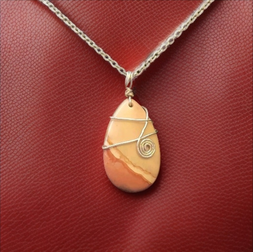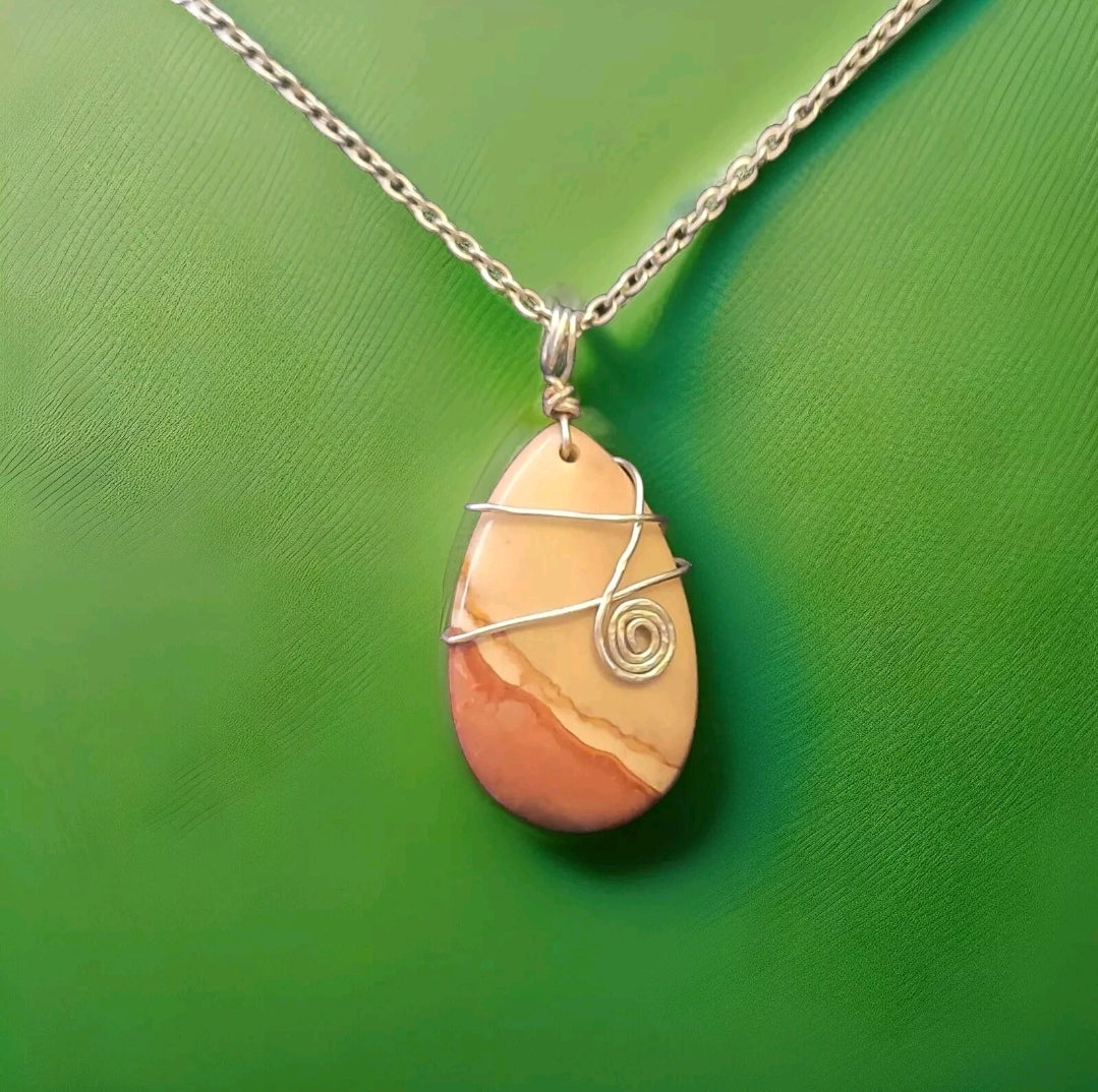 Polychrome Jasper Teardrop Pendant Wire Wrapped Stone Silver Link Necklace Handmade