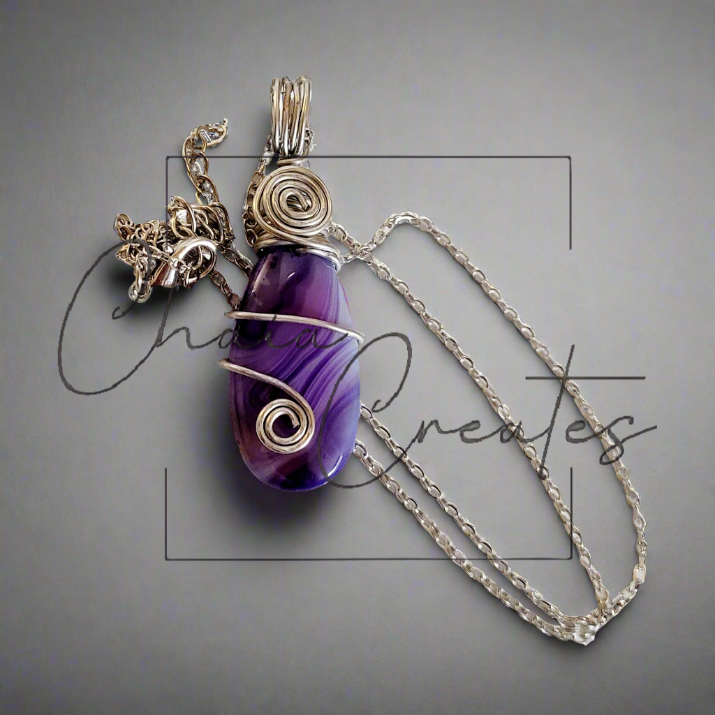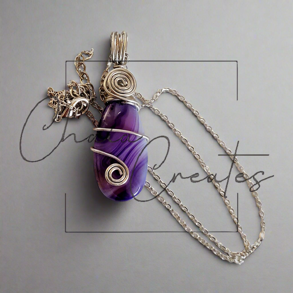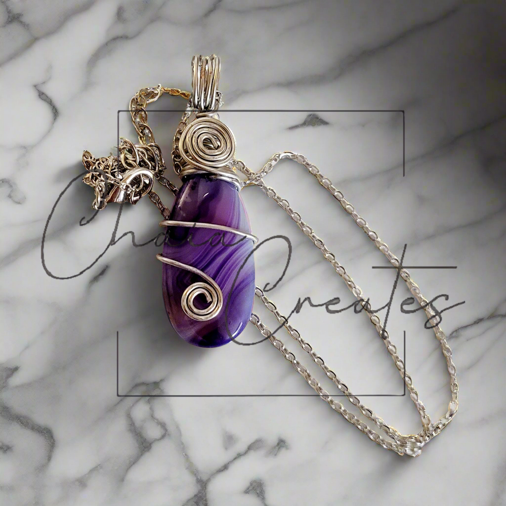 Purple and White Stripe Agate Teardrop Pendant Necklace | Elegant Stripes with Natural Beauty