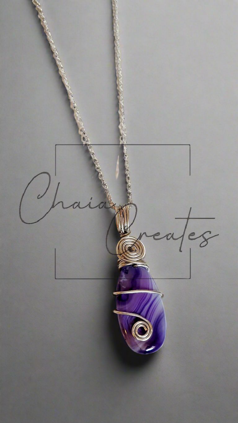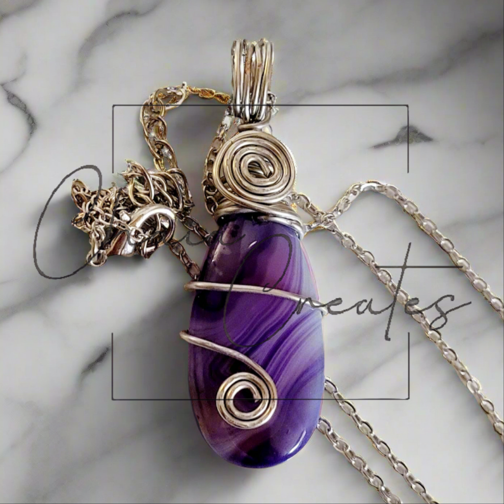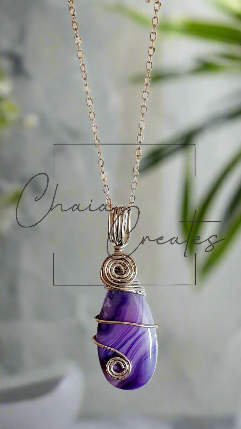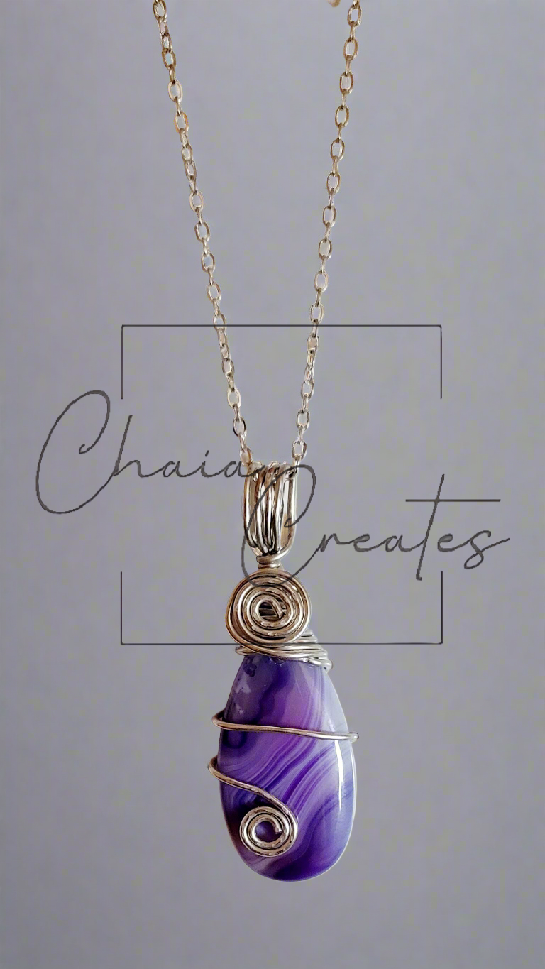 - Genuine Agate Pendant: The necklace showcases a genuine agate stone in a captivating teardrop shape. The unique purple and white stripe pattern adds a touch of elegance and intrigue. Agate is known for its grounding properties and soothing energy, making it both beautiful and meaningful.