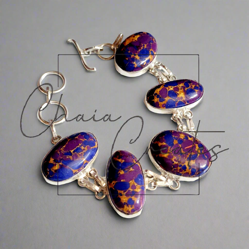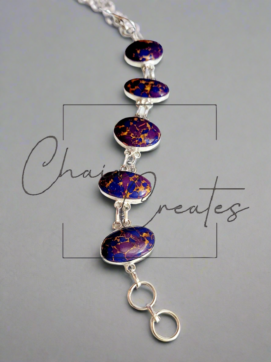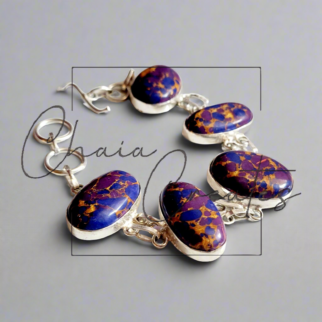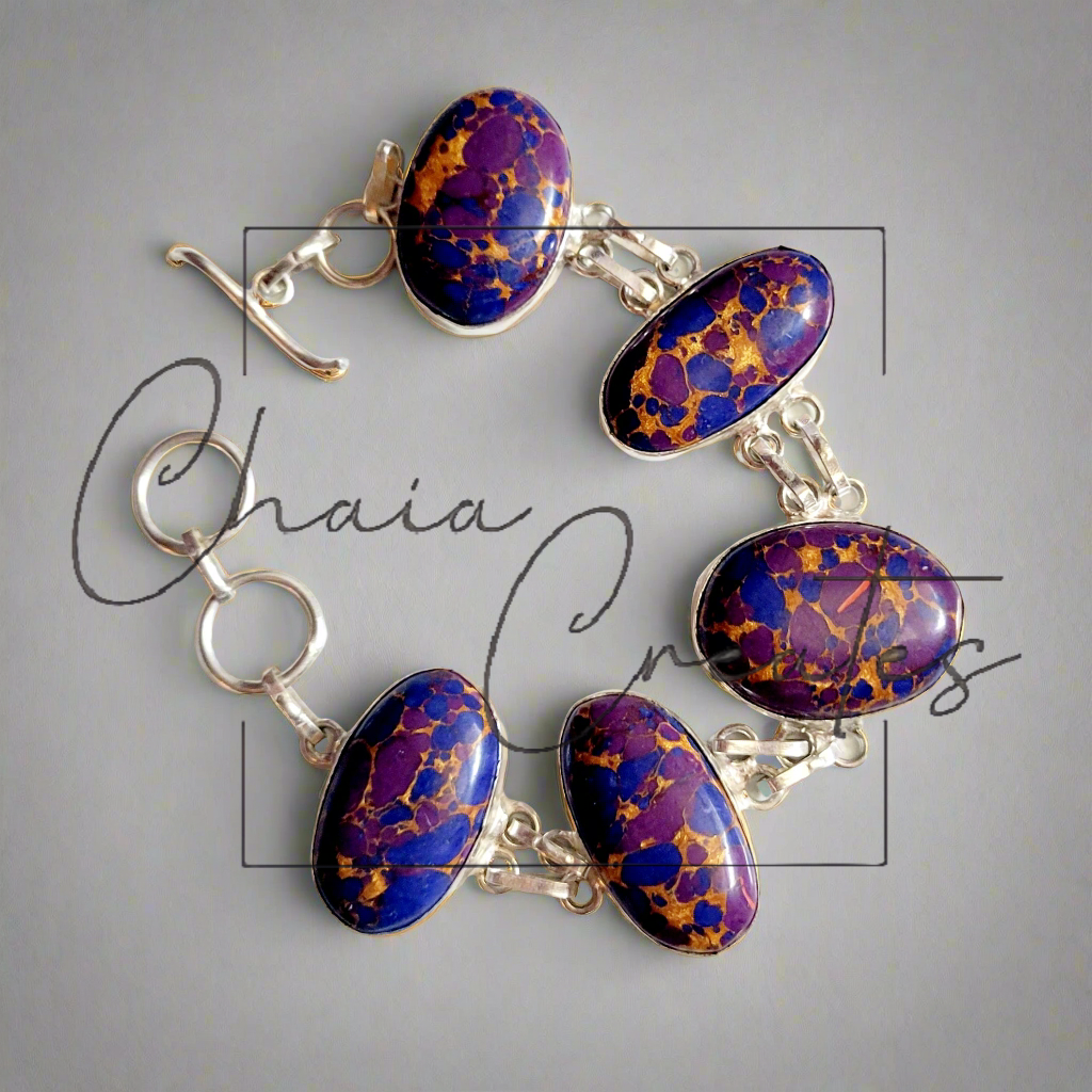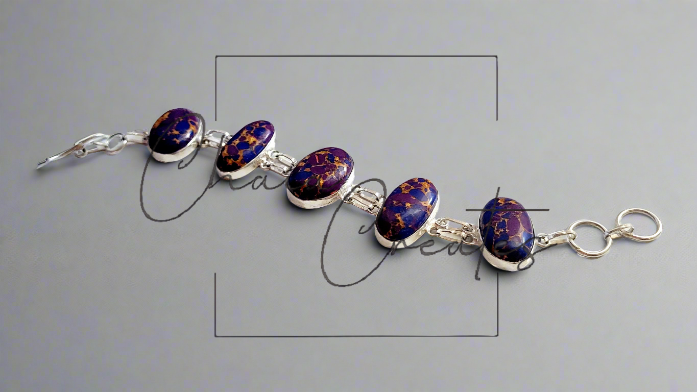 Elevate your style with the Rainbow Calsilica Purple Link Bracelet. This piece is not just a bracelet but a statement of individuality and elegance. Order yours today and embrace the vibrant elegance of this unique piece!