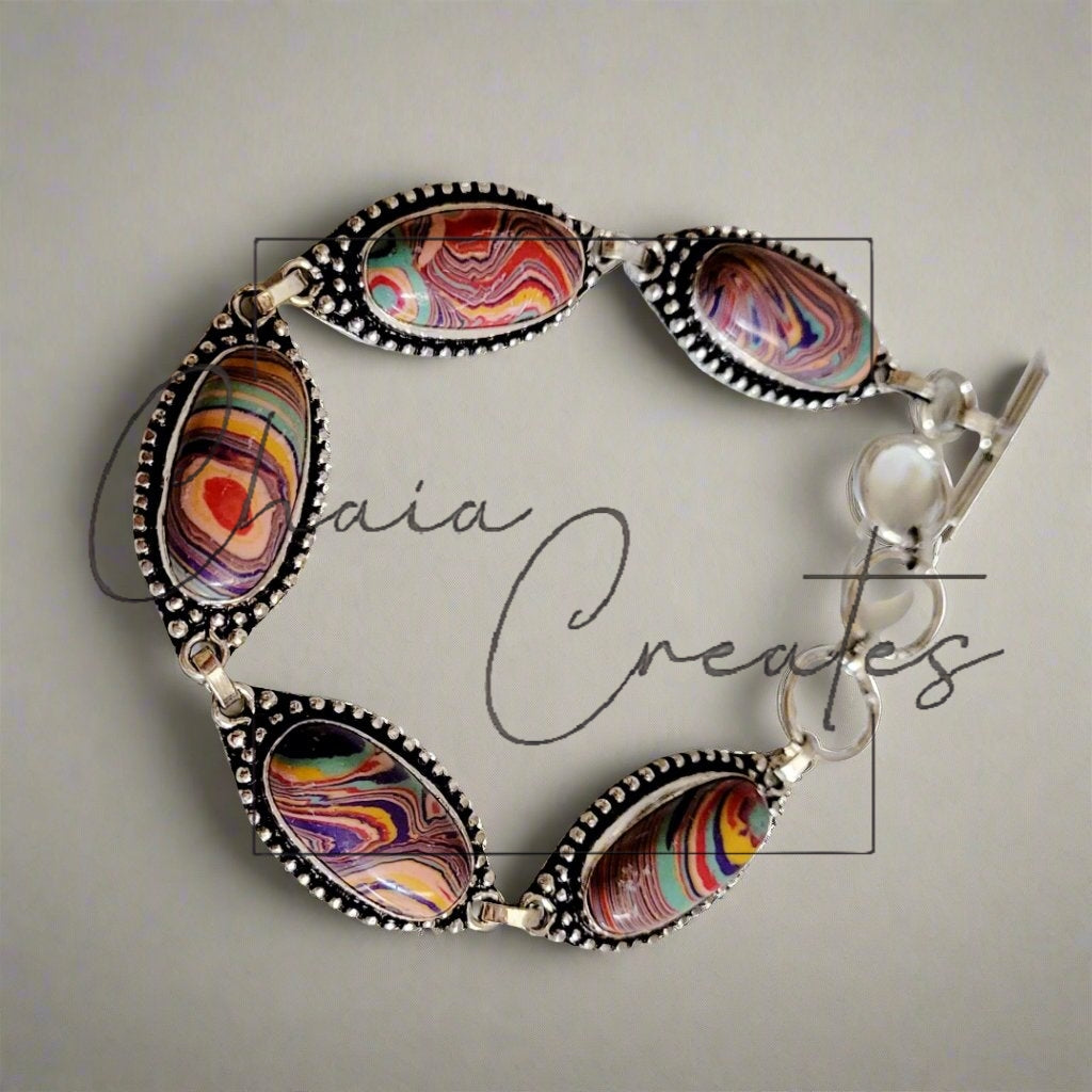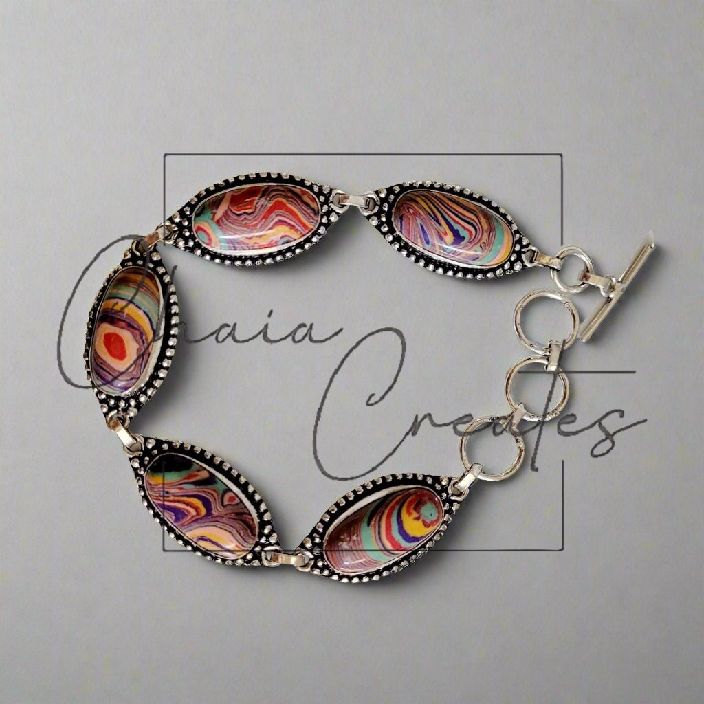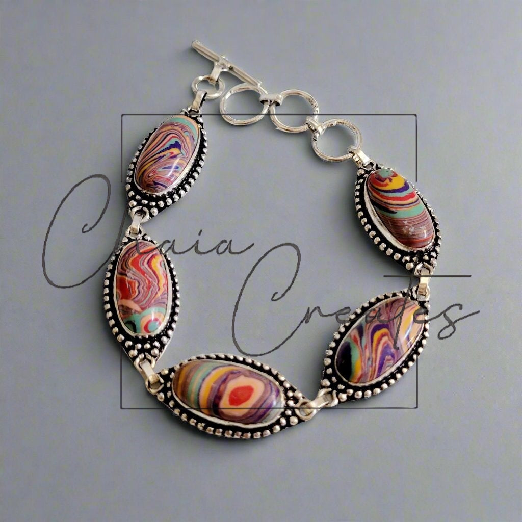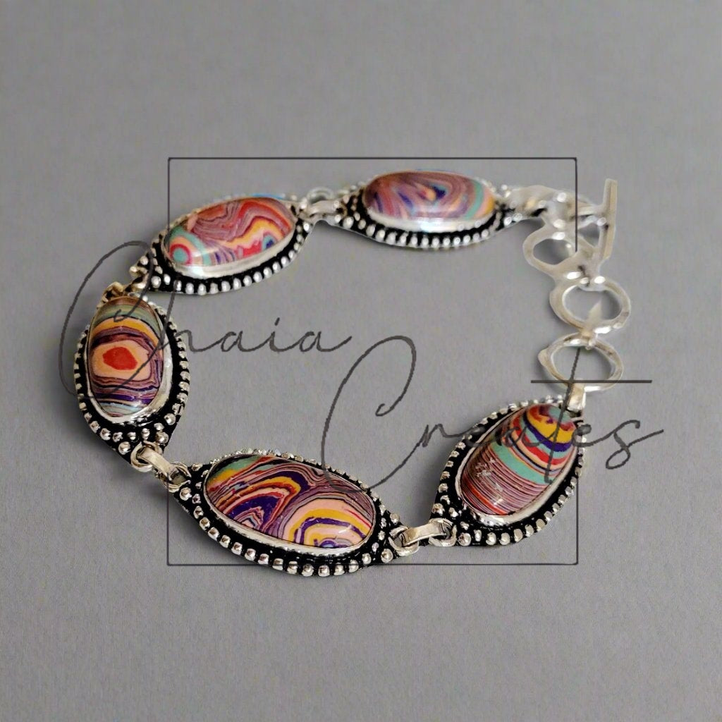 Rainbow Calsilica Sterling Silver Double Link Bracelet | Vibrant Elegance with a Touch of Luxury