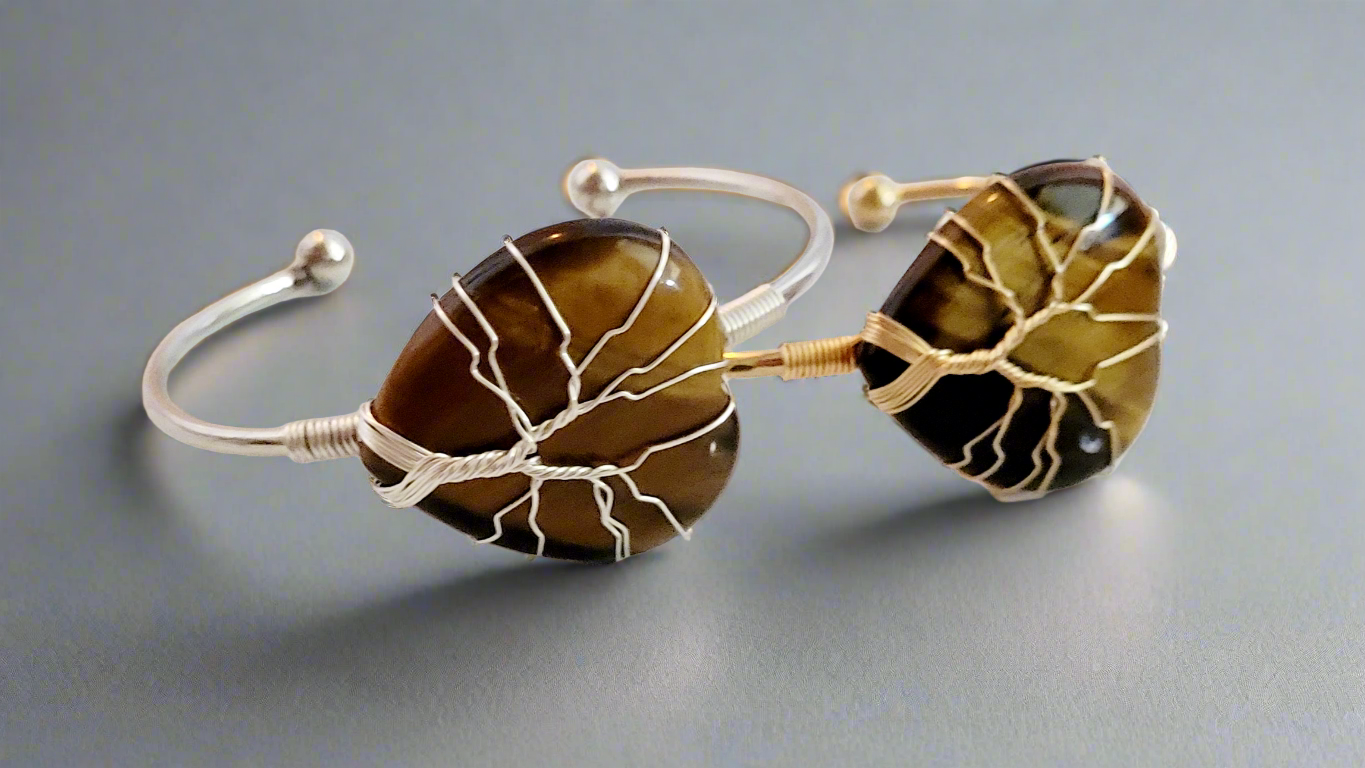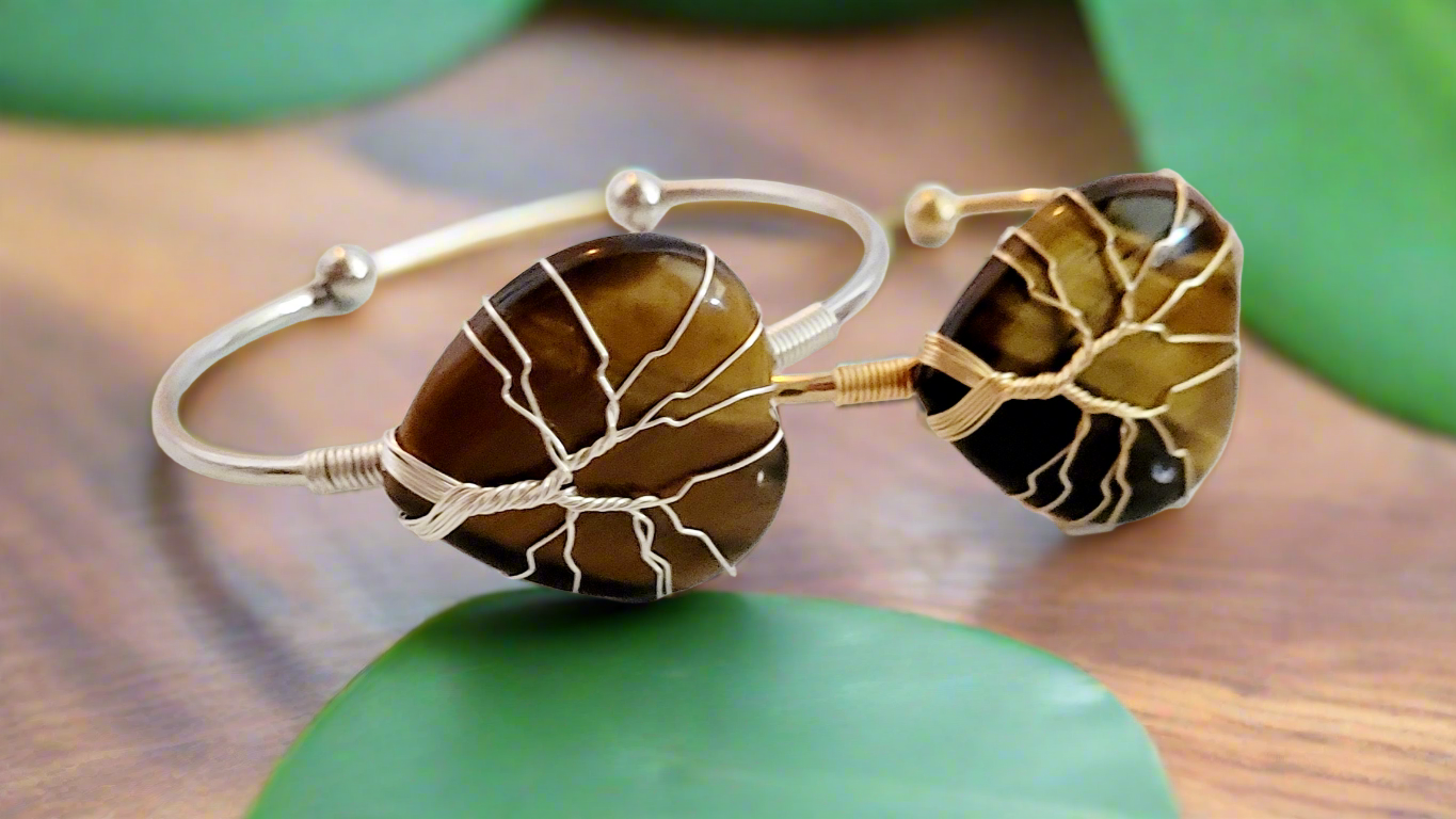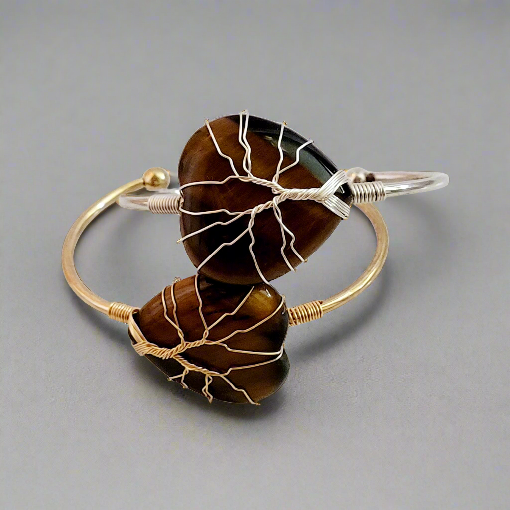 Add a Touch of Elegance with Chaia Creates Tiger's Eye Heart Wire Wrap Bangle Bracelet