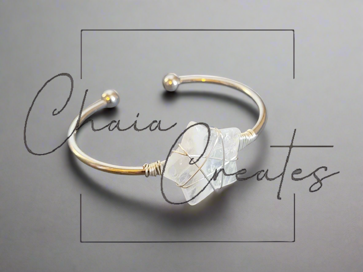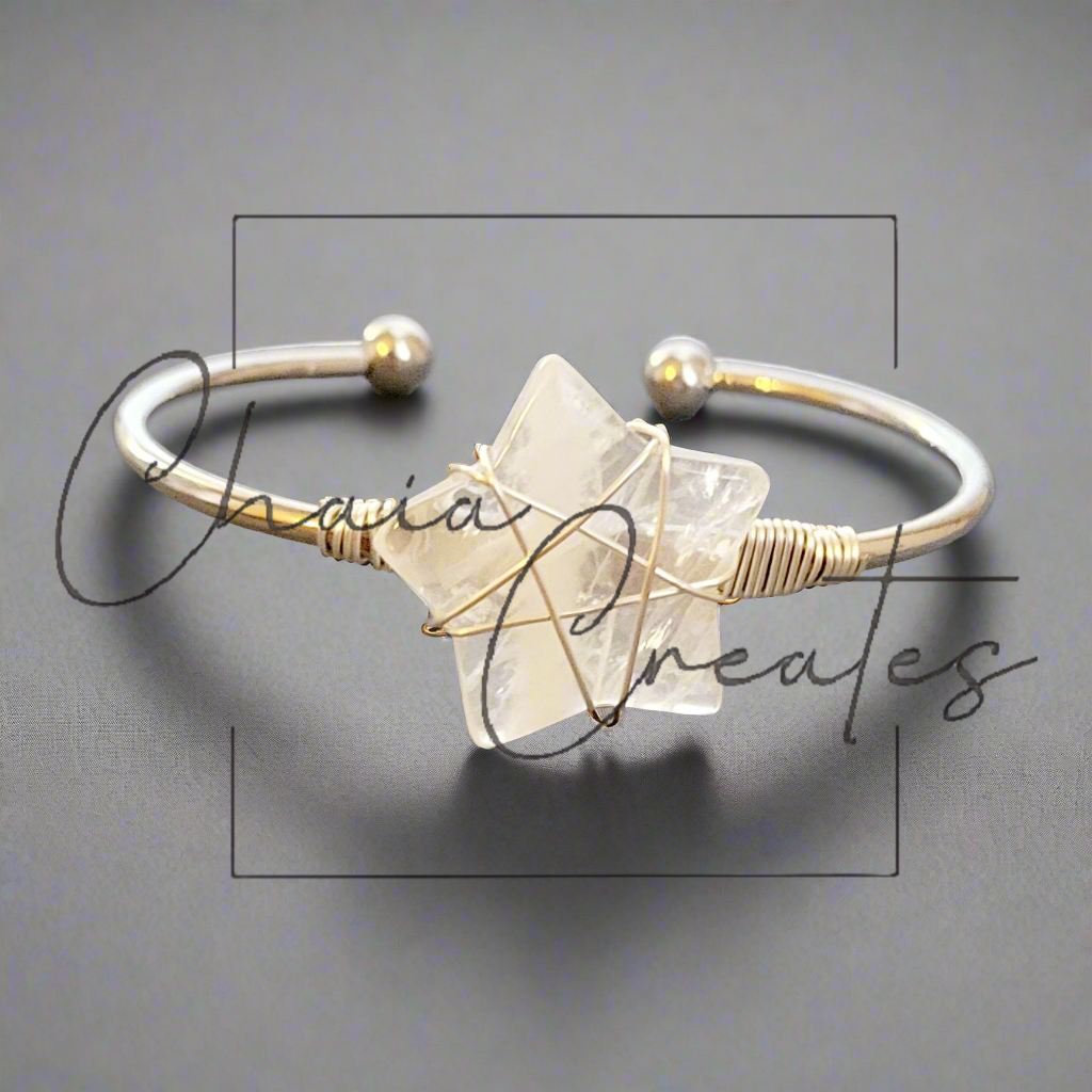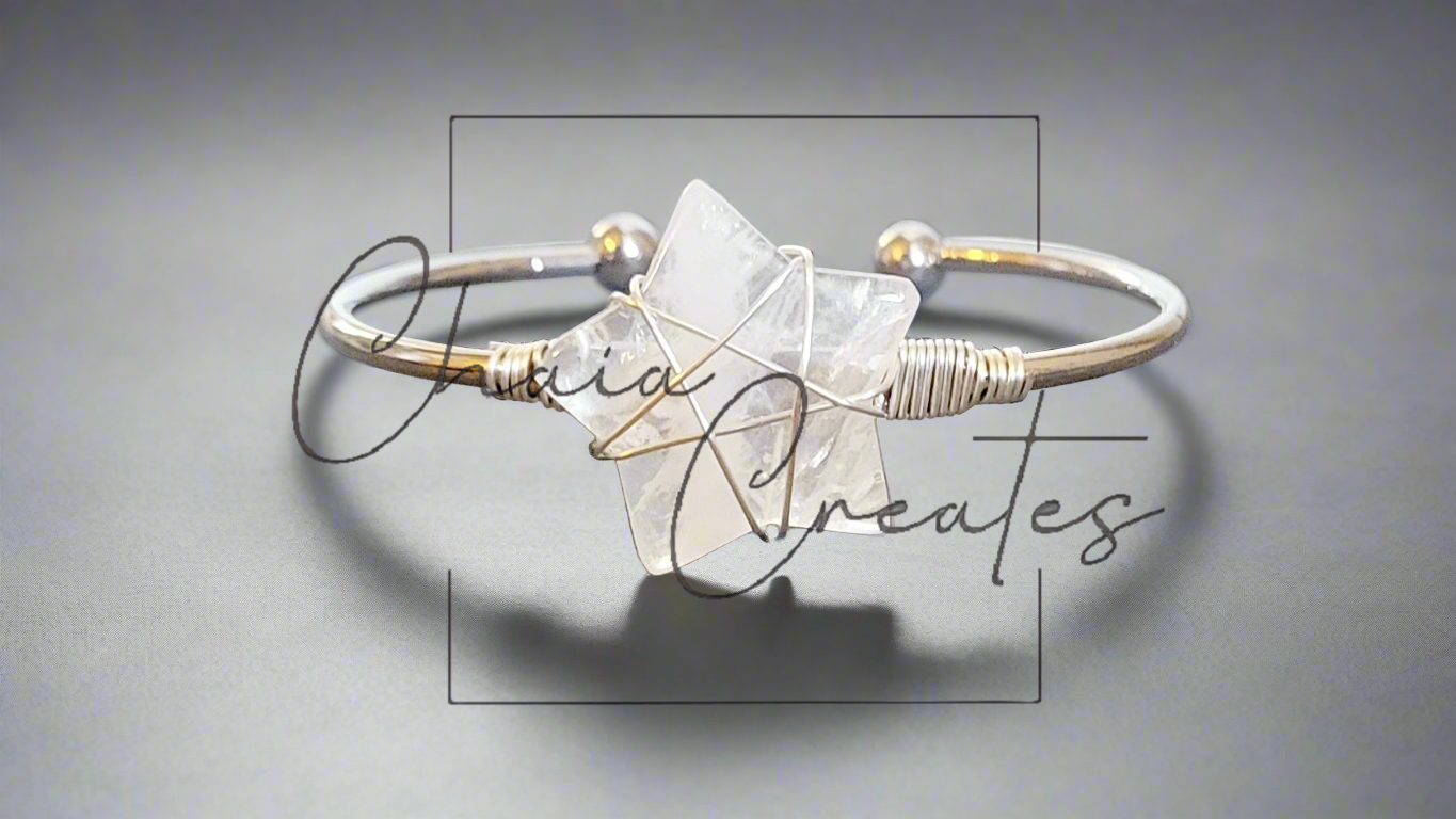 Order now to experience the radiant charm and sophisticated elegance of our Wire-Wrapped Stone Star Silver Bangle Bracelet with Clear Rock Quartz. Embrace the perfect blend of style and meaning in your jewelry collection today!