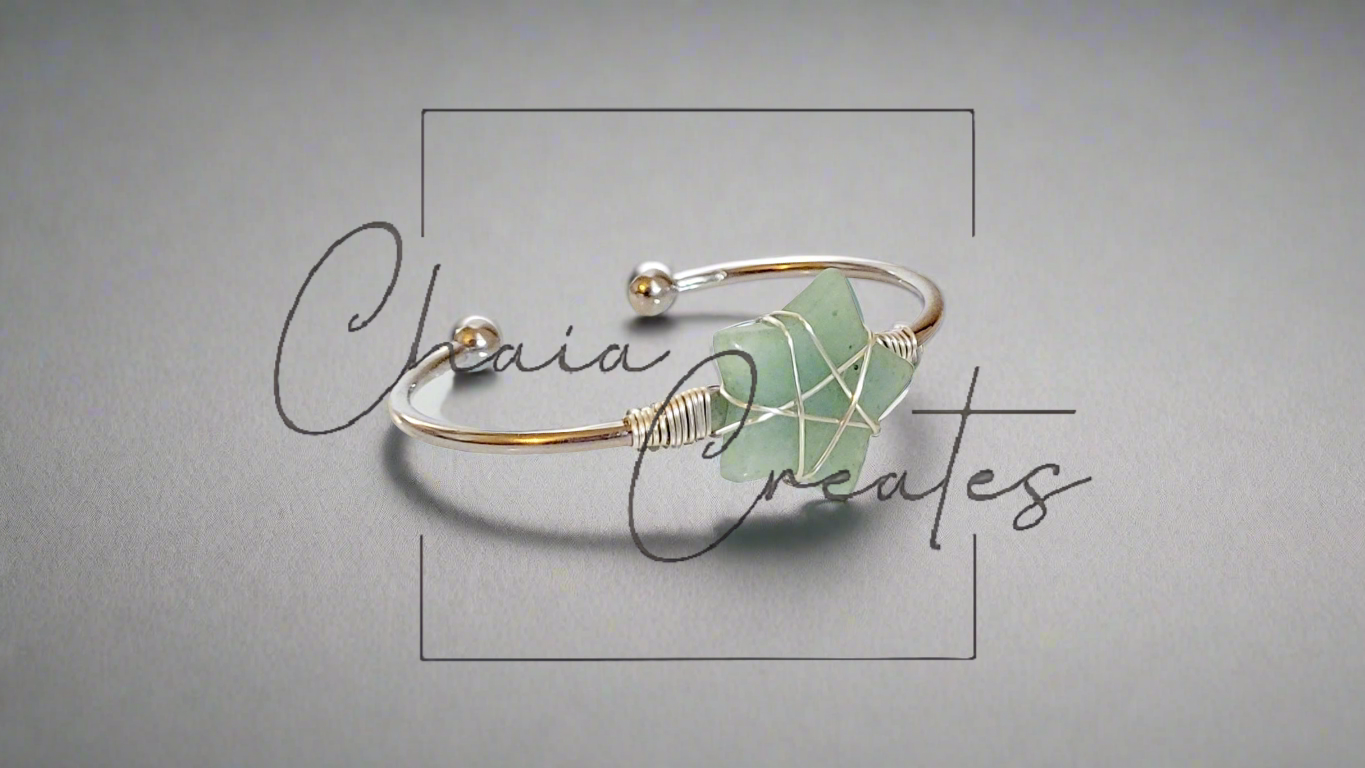 Introducing the Wire Wrapped Stone Star Silver Bangle Bracelet! Made of beautiful green aventurine and featuring a delicate 5 point star wrapped in silver-plated copper wire, this elegant bangle adds a touch of unique beauty to any outfit. Lightweight and stylish, it's a must-have accessory for all occasions! This elegant bangle bracelet features a small, lightweight design made of gorgeous green aventurine. The 5 point star shape, wrapped in silver-plated copper wire, adds a touch of delicate beauty. Enjoy the benefits of a unique accessory with this Wire Wrapped Stone Star Silver Bangle Bracelet.