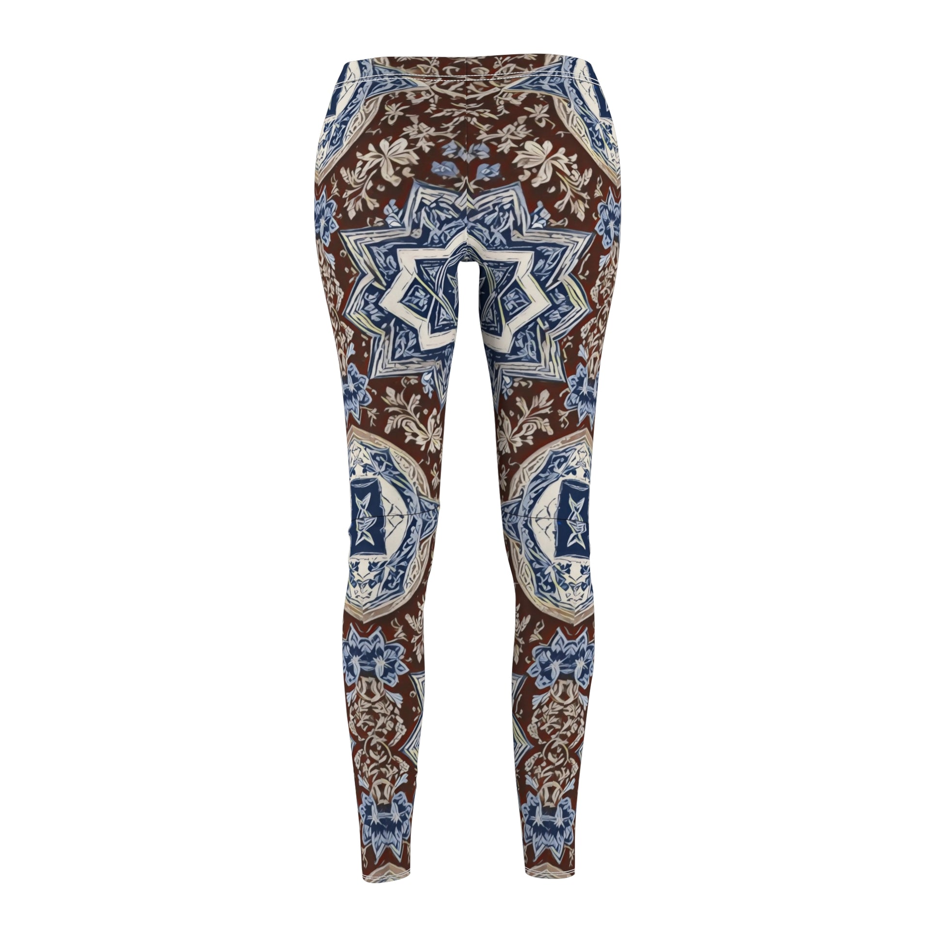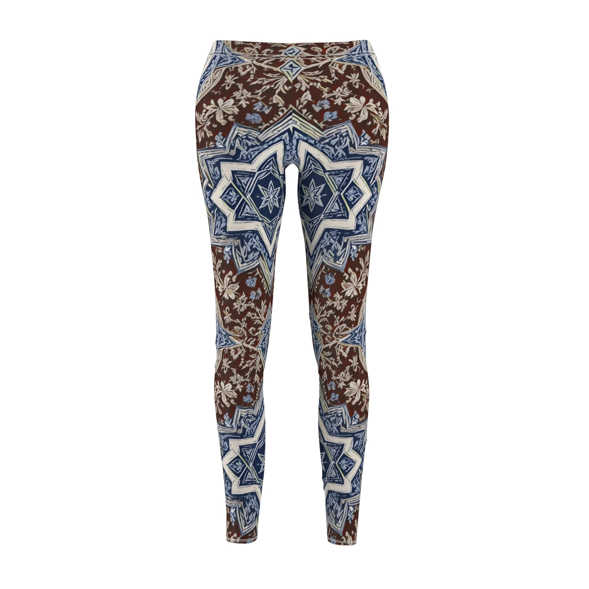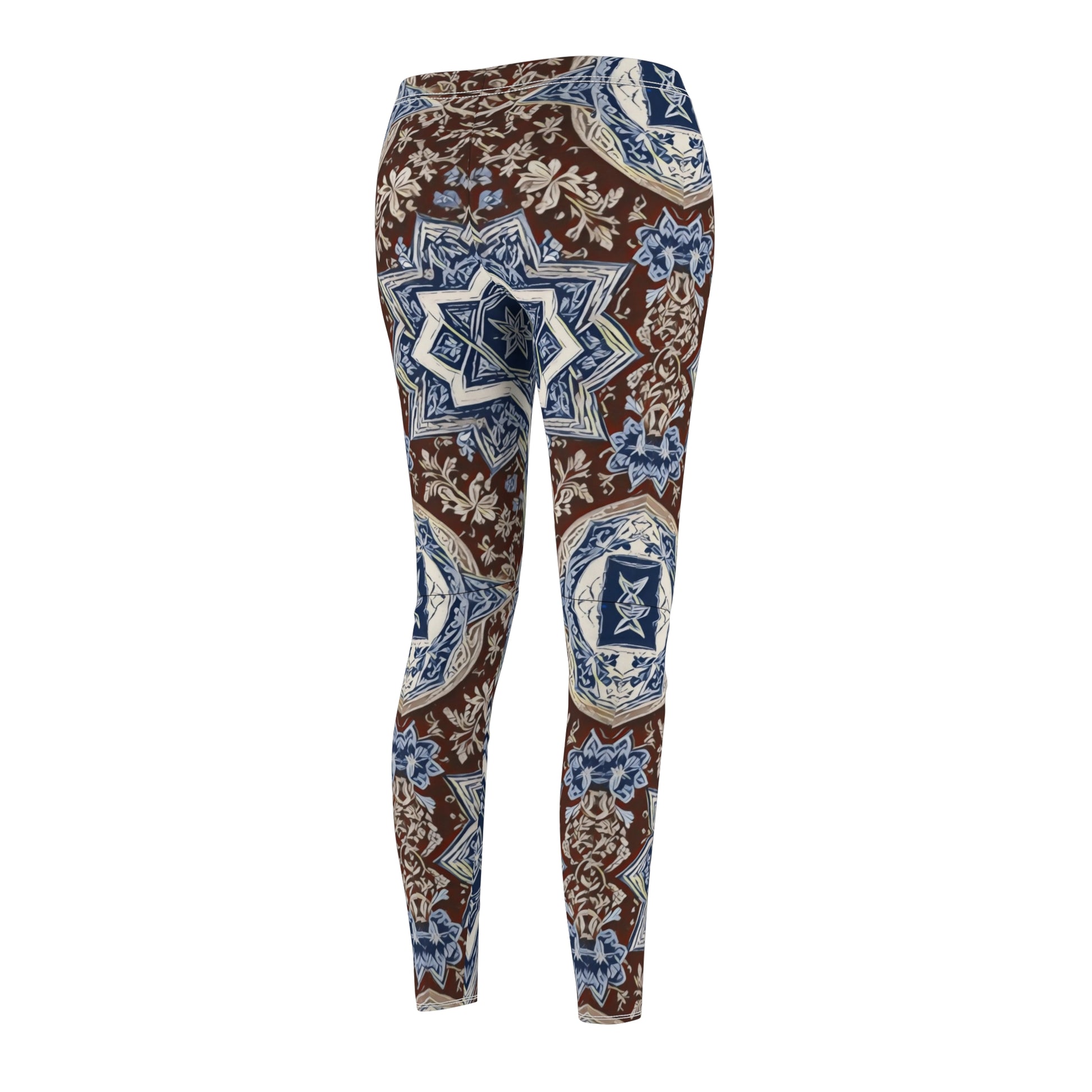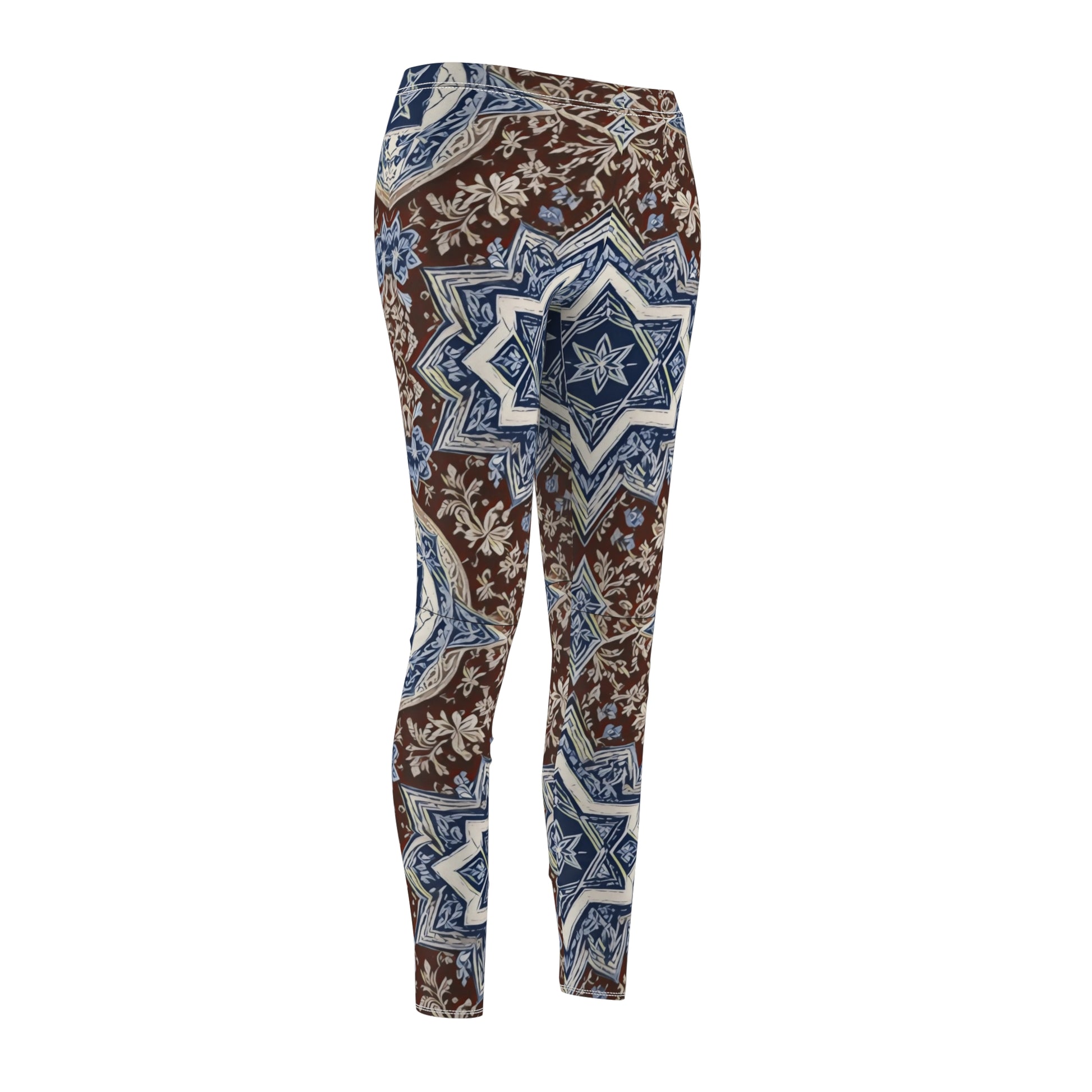 Women's Cut & Sew Casual Leggings -- Chocolate Brown and Blue Star of David Magen David Pattern
