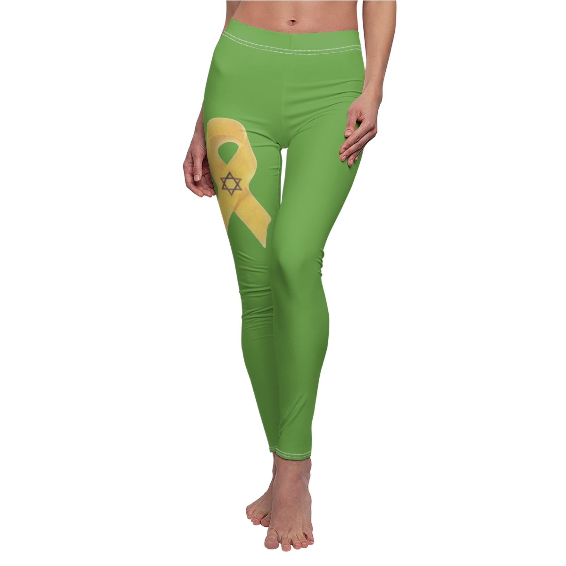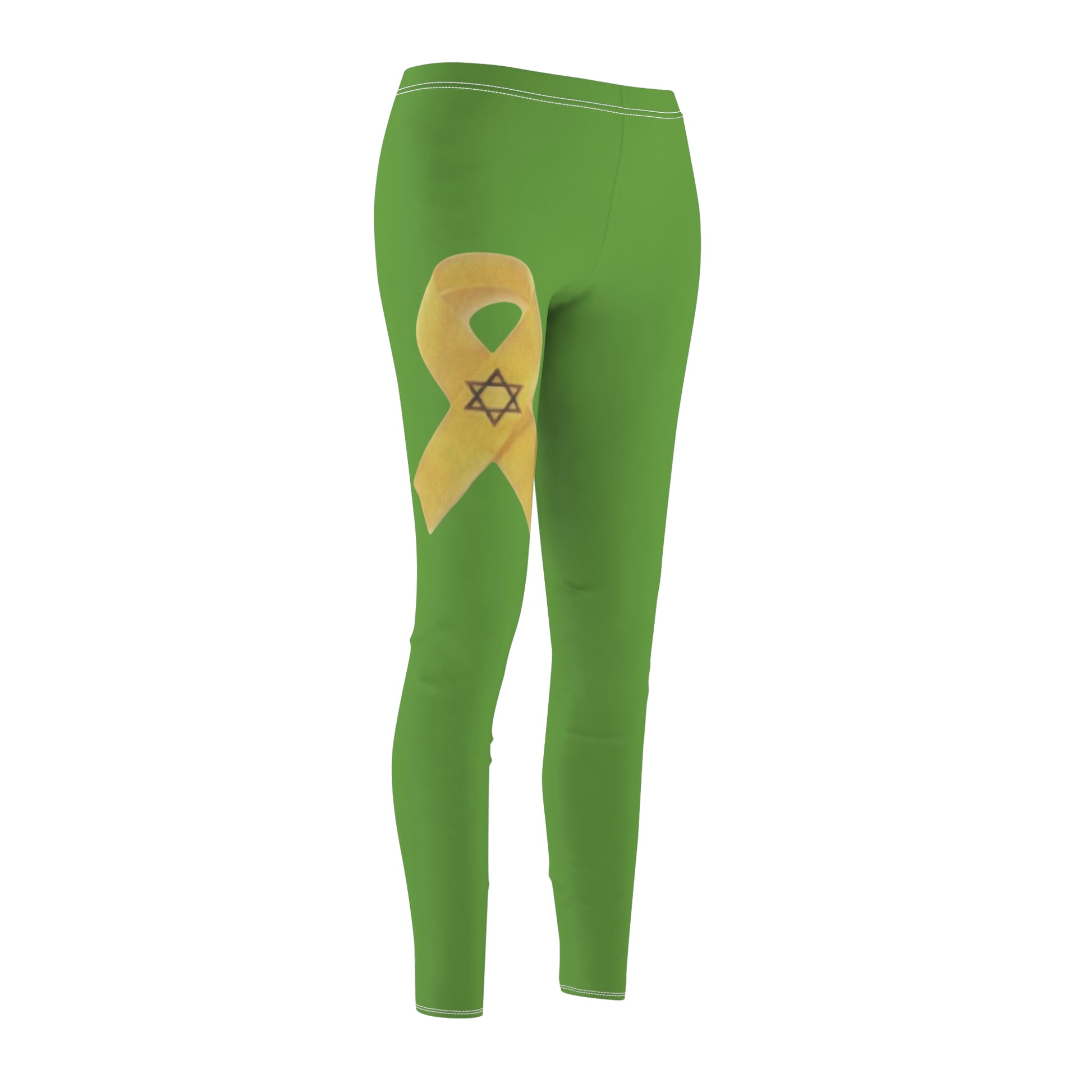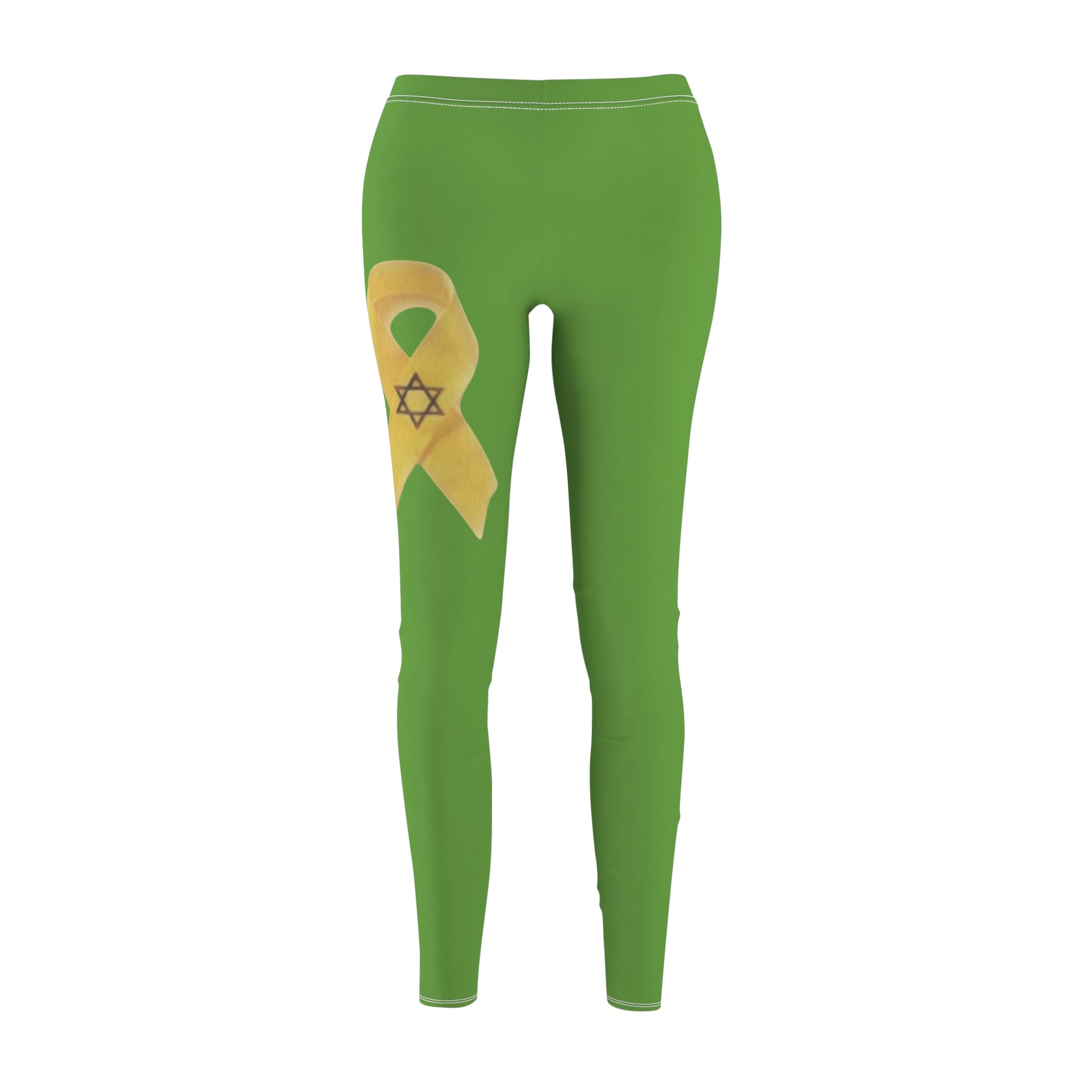 Women's Cut & Sew Casual Leggings, Green - Yellow Ribbon 'Bring Them Home Now' Art, by Chaia Malana